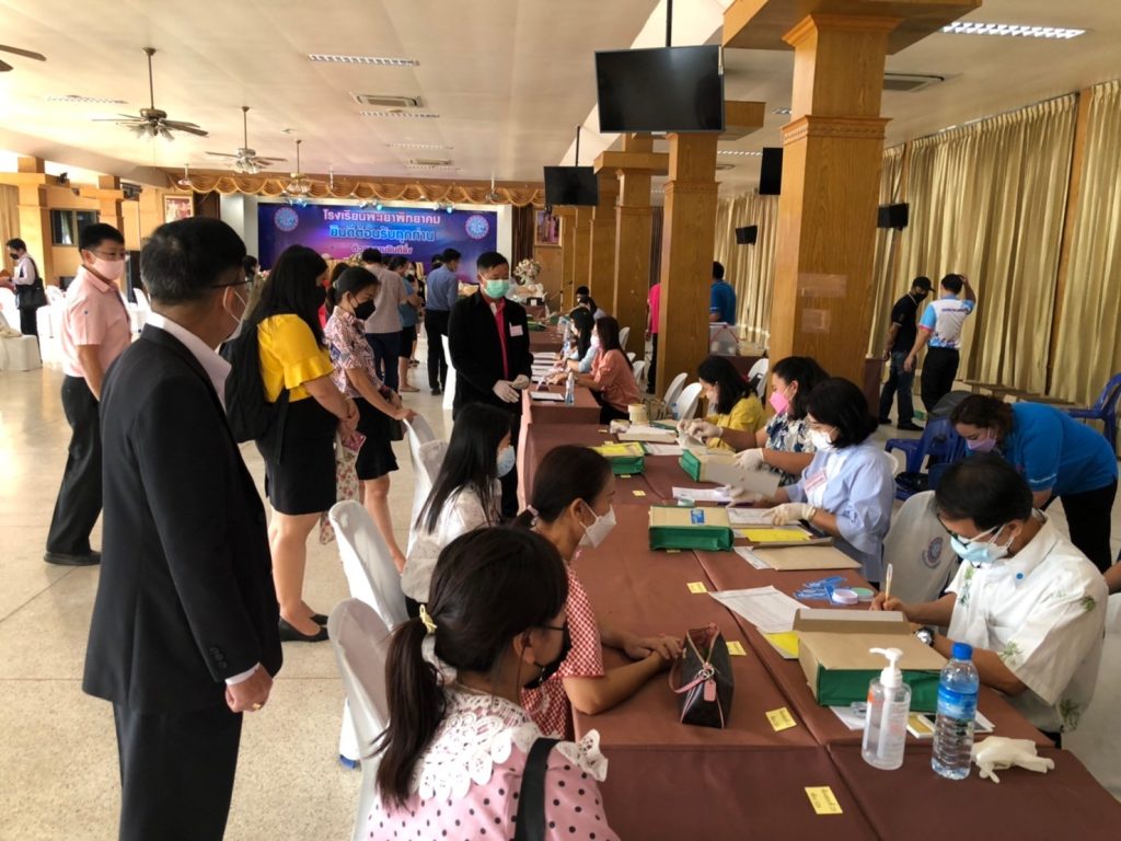 สพม.พะเยา ลงพื้นที่ตรวจเยี่ยมสนามสอบ 9 วิชาสามัญ (TCAS) ณ โรงเรียนพะเยาพิทยาคม.เมื่อวันเสาร์ที่ 19 มีนาคม พ.ศ.2565 ว่าที่ร้อยโททวีป วงศ์ชาลีกุล ผู้อำนวยการสำนักงานเขตพื้นที่การศึกษามัธยมศึกษาพะเยา และ นางอุไร จันทร์ซางเพ็ญ ผอ.การกลุ่มนิเทศ ติดตาม และประเมินผลการศึกษา สพม.พะเยา ได้ลงพื้นที่ตรวจเยี่ยมสนามสอบ 9 วิชาสามัญ (TCAS) ให้กำลังใจเจ้าหน้าที่ที่ปฏิบัติหน้าที่คุมสอบ รับฟังปัญหา และแนวทางการปฏิบัติตามมาตรการป้องกันควบคุมการแพร่ระบาดของโรคติดเชื้อไวรัสโคโรนา 2019 โดยมีนายมานะ พิริยพัฒนา ผู้อำนวยการโรงเรียนพะเยาพิทยาคม พร้อมด้วยคณะผู้บริหารและคณะครูให้การต้อนรับ ณ โรงเรียนพะเยาพิทยาคม อำเภอเมือง จังหวัดพะเยา