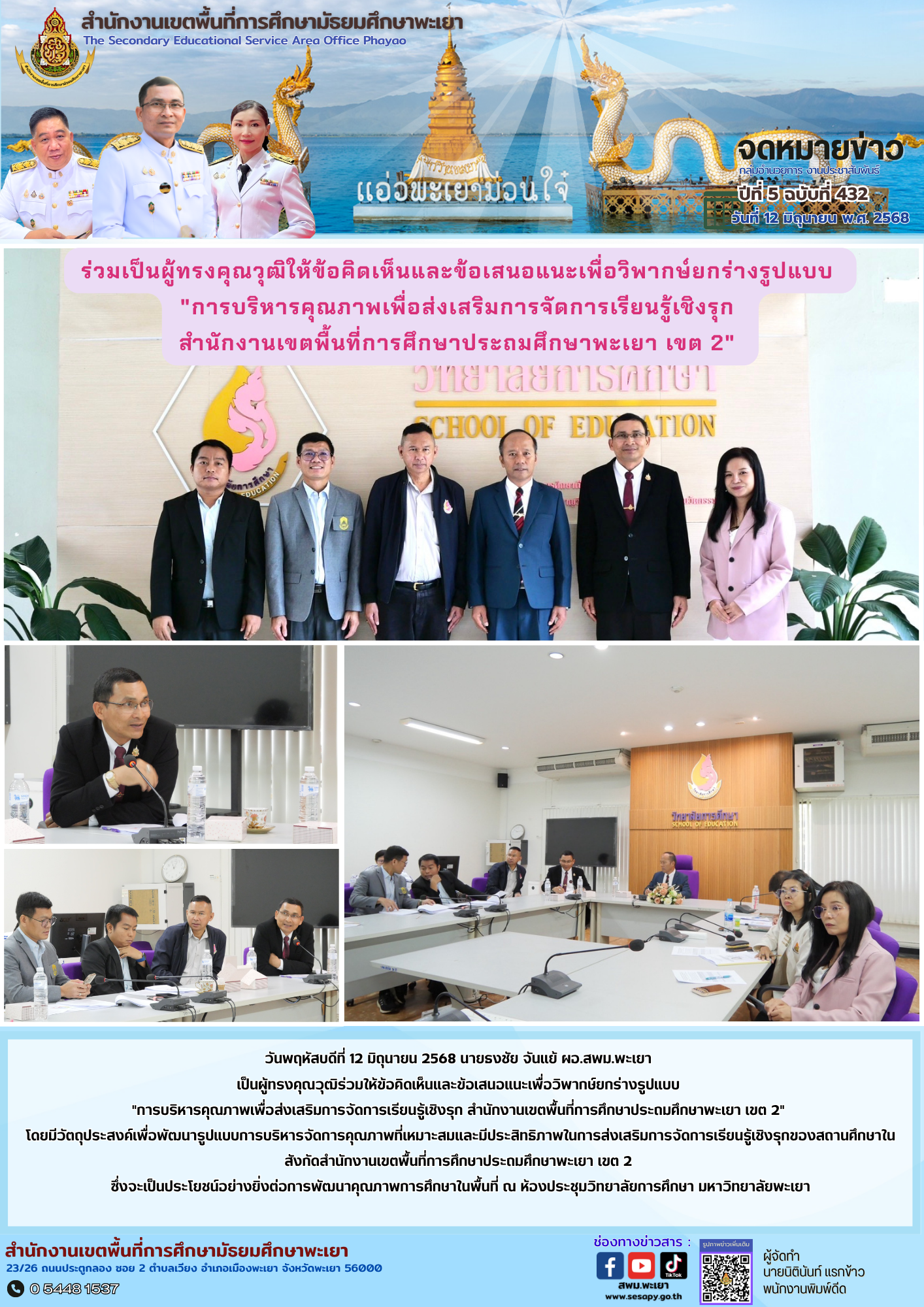 จดหมายข่าว สพม. กลุ่มอำนวยการ งานประชาสัมพันธ์ ปีที่ 5 ฉบับที่ 433 : 12 มิถุนายน 2568 16 มิถุนายน 202516 มิถุนายน 2025