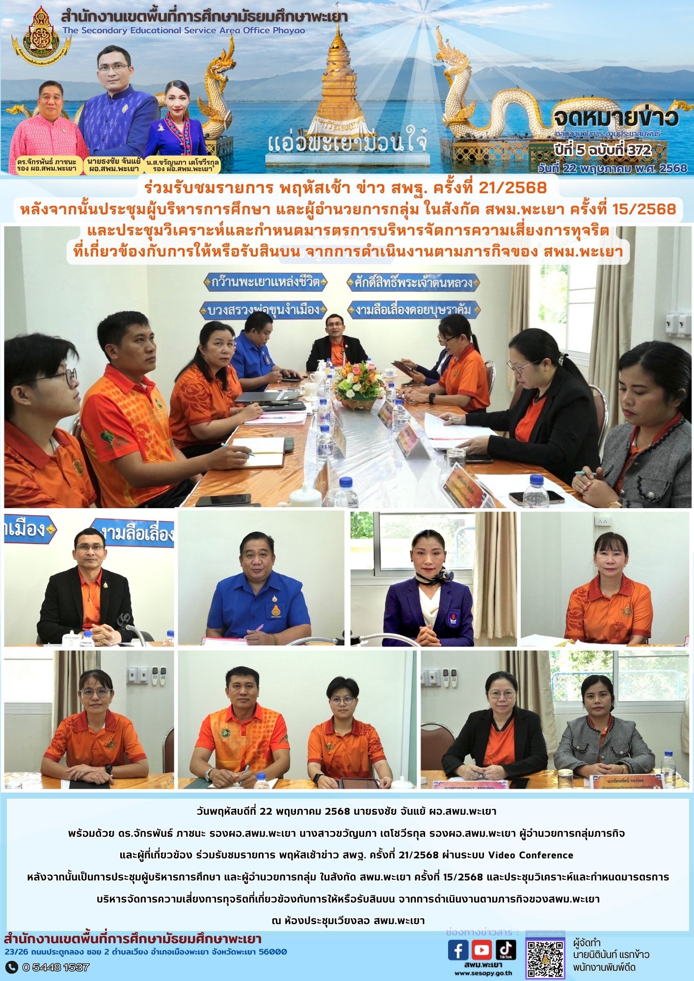 จดหมายข่าว สพม. กลุ่มอำนวยการ งานประชาสัมพันธ์ ปีที่ 5 ฉบับที่ 372 : 20 พฤษภาคม 2568 23 พฤษภาคม 202523 พฤษภาคม 2025