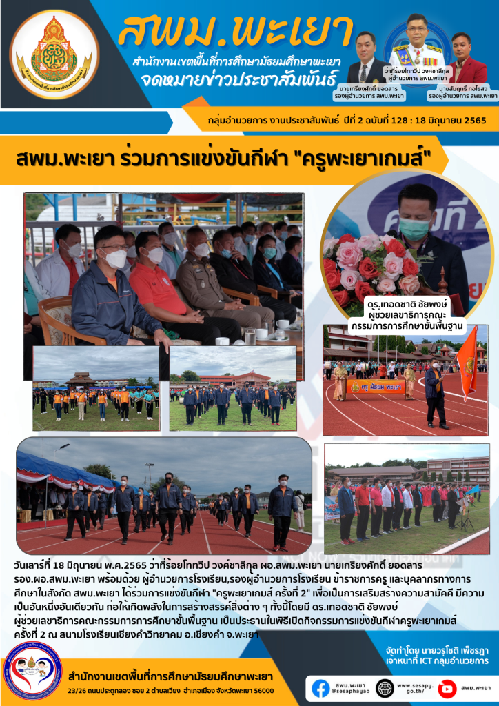 จดหมายข่าว สพม. สพม.พะเยา ร่วมการแข่งขันกีฬา “ครูพะเยาเกมส์” ครั้งที่ 2 20 มิถุนายน 202221 มิถุนายน 2022