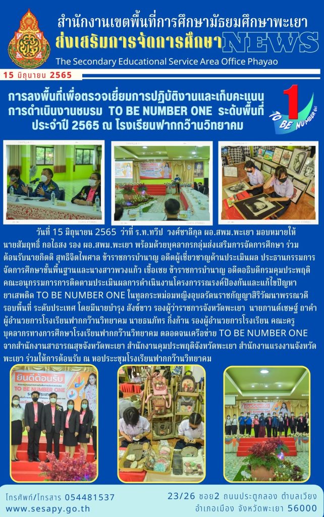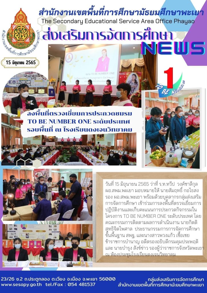 จดหมายข่าว สพม. ตรวจเยี่ยมการปฏิบัติงานและเก็บคำแนนการดำเนินการงานจังหวัด อำเภอ และชมรม TO BE NUMBER ONE 20 มิถุนายน 202221 มิถุนายน 2022