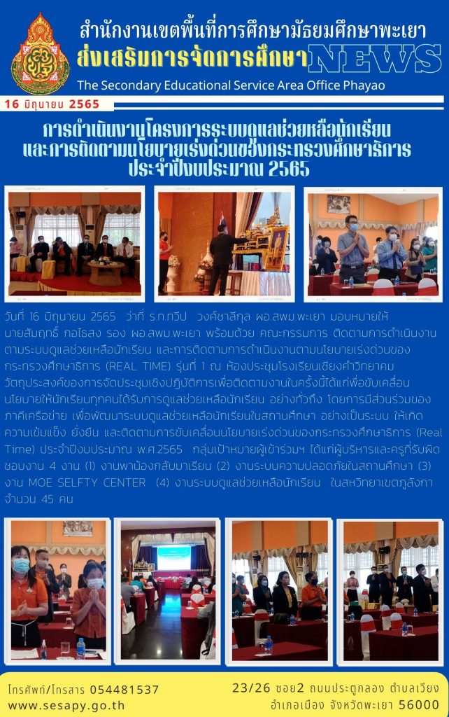 จดหมายข่าว สพม. การดำเนินการโครงการระบบดูแลช่วยเหลือนักเรียนและการติดตามนโยบายเร่งด่วนของกระทรวงศึกษาธิการ 20 มิถุนายน 202221 มิถุนายน 2022