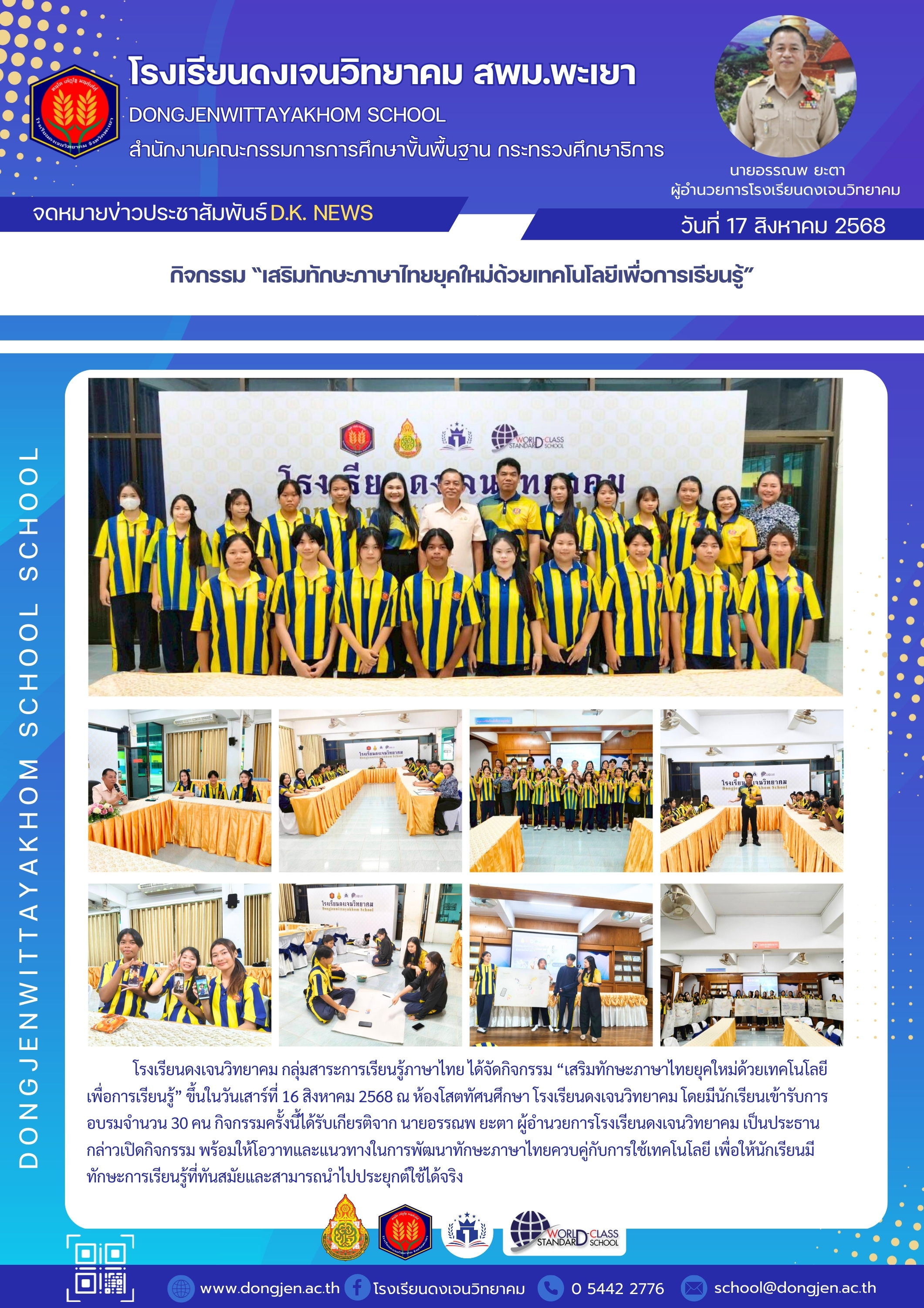 จดหมายข่าวโรงเรียน กิจกรรม “เสริมทักษะภาษาไทยยุคใหม่ด้วยเทคโนโลยีเพื่อการเรียนรู้” 17 สิงหาคม 202517 สิงหาคม 2025