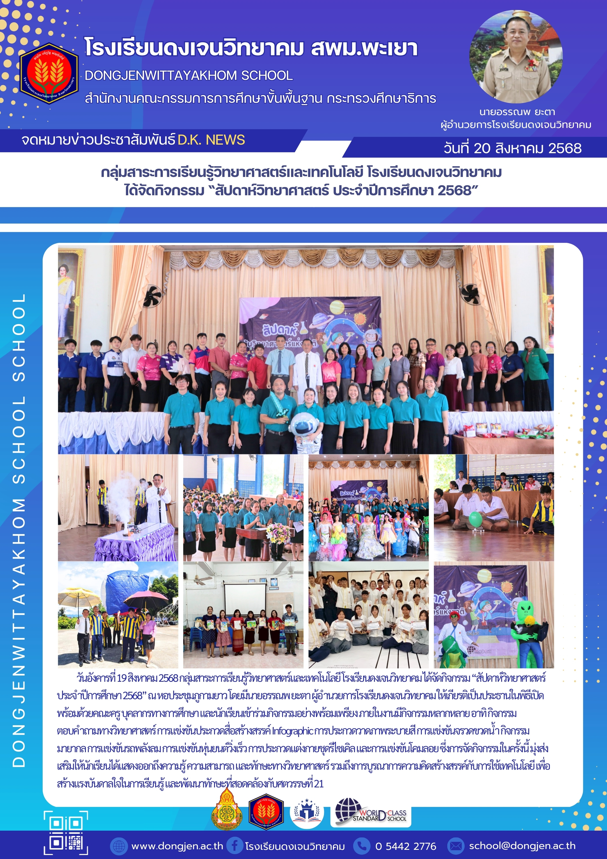 จดหมายข่าวโรงเรียน กลุ่มสาระการเรียนรู้วิทยาศาสตร์และเทคโนโลยี โรงเรียนดงเจนวิทยาคม ได้จัดกิจกรรม “สัปดาห์วิทยาศาสตร์ ประจำปีการศึกษา 2568” 20 สิงหาคม 202520 สิงหาคม 2025
