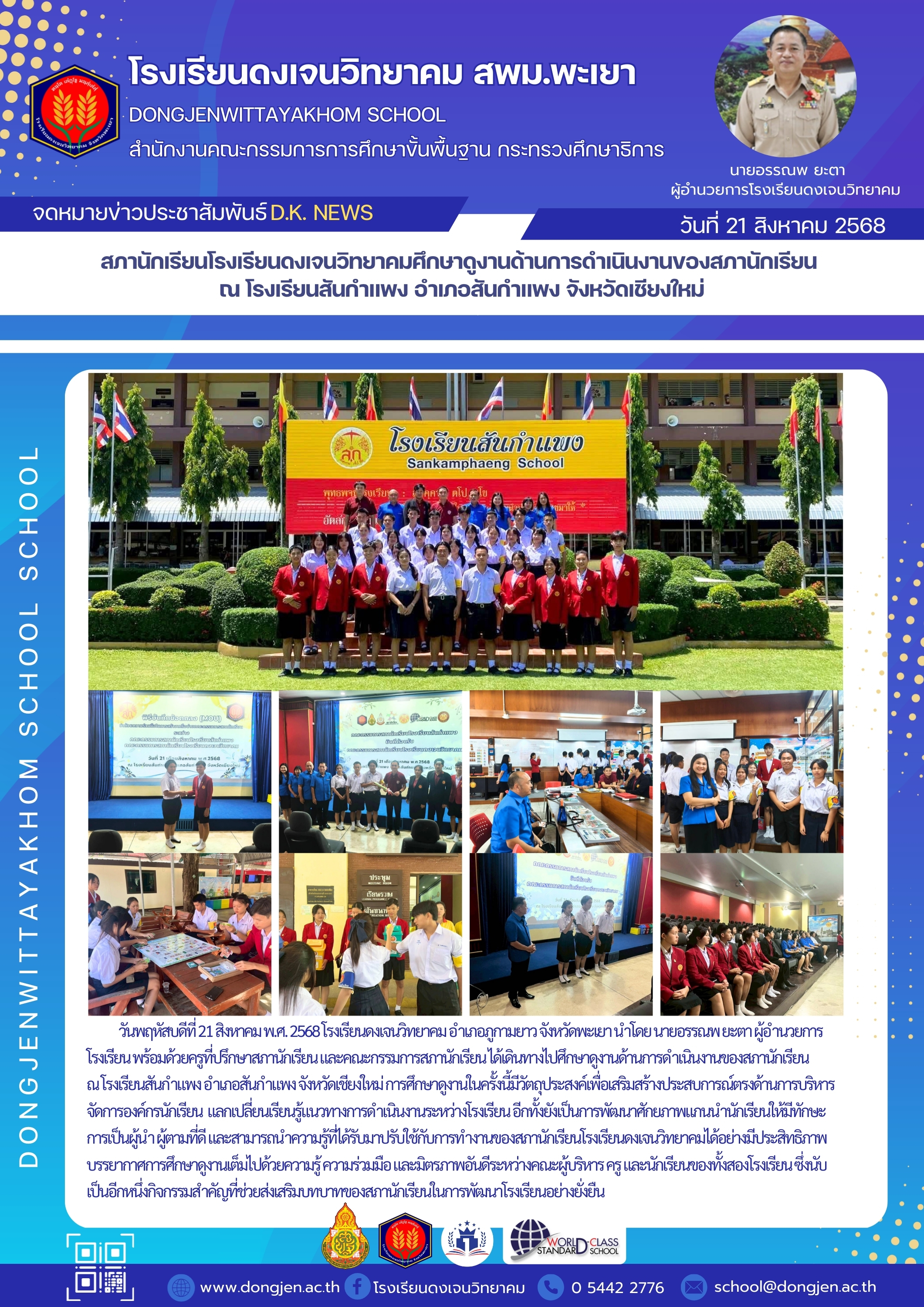 จดหมายข่าวโรงเรียน สภานักเรียนโรงเรียนดงเจนวิทยาคมศึกษาดูงานด้านการดำเนินงานของสภานักเรียน ณ โรงเรียนสันกำแพง อำเภอสันกำแพง จังหวัดเชียงใหม่ 21 สิงหาคม 202521 สิงหาคม 2025