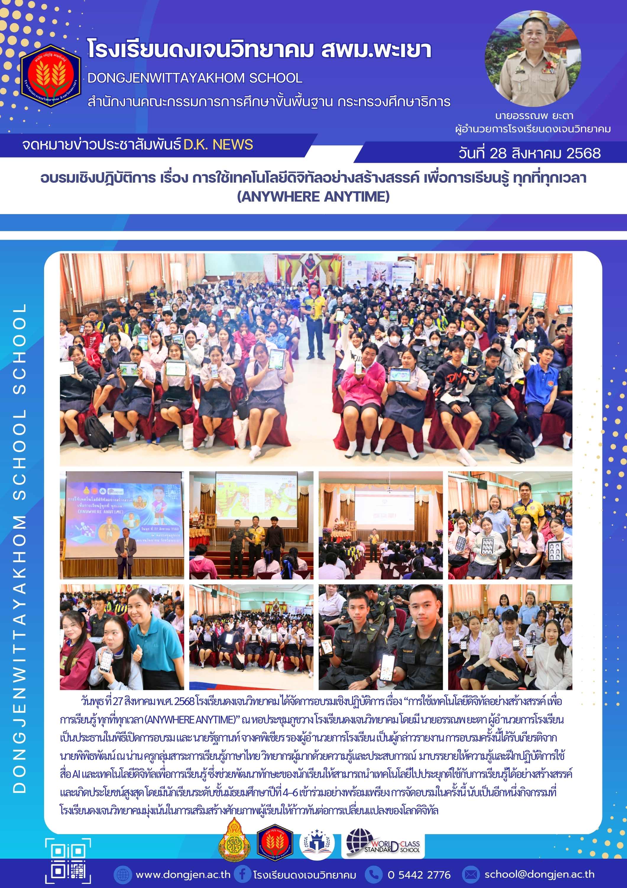 จดหมายข่าวโรงเรียน อบรมเชิงปฏิบัติการ เรื่อง การใช้เทคโนโลยีดิจิทัลอย่างสร้างสรรค์ เพื่อการเรียนรู้ ทุกที่ทุกเวลา (ANYWHERE ANYTIME) 28 สิงหาคม 202528 สิงหาคม 2025