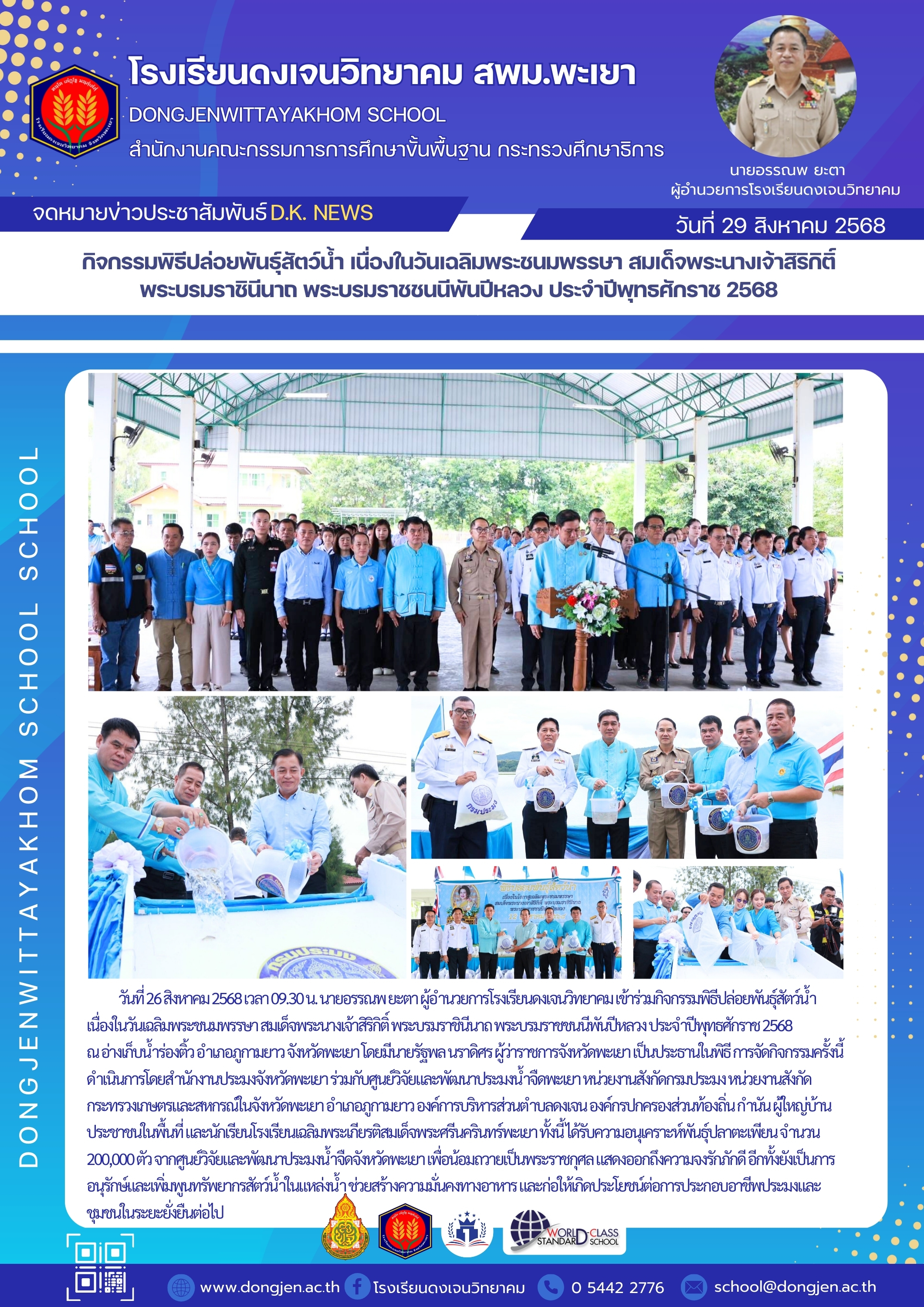 จดหมายข่าวโรงเรียน กิจกรรมพิธีปล่อยพันธุ์สัตว์น้ำ เนื่องในวันเฉลิมพระชนมพรรษา สมเด็จพระนางเจ้าสิริกิติ์ พระบรมราชินีนาถ พระบรมราชชนนีพันปีหลวง ประจำปีพุทธศักราช 2568 29 สิงหาคม 202529 สิงหาคม 2025