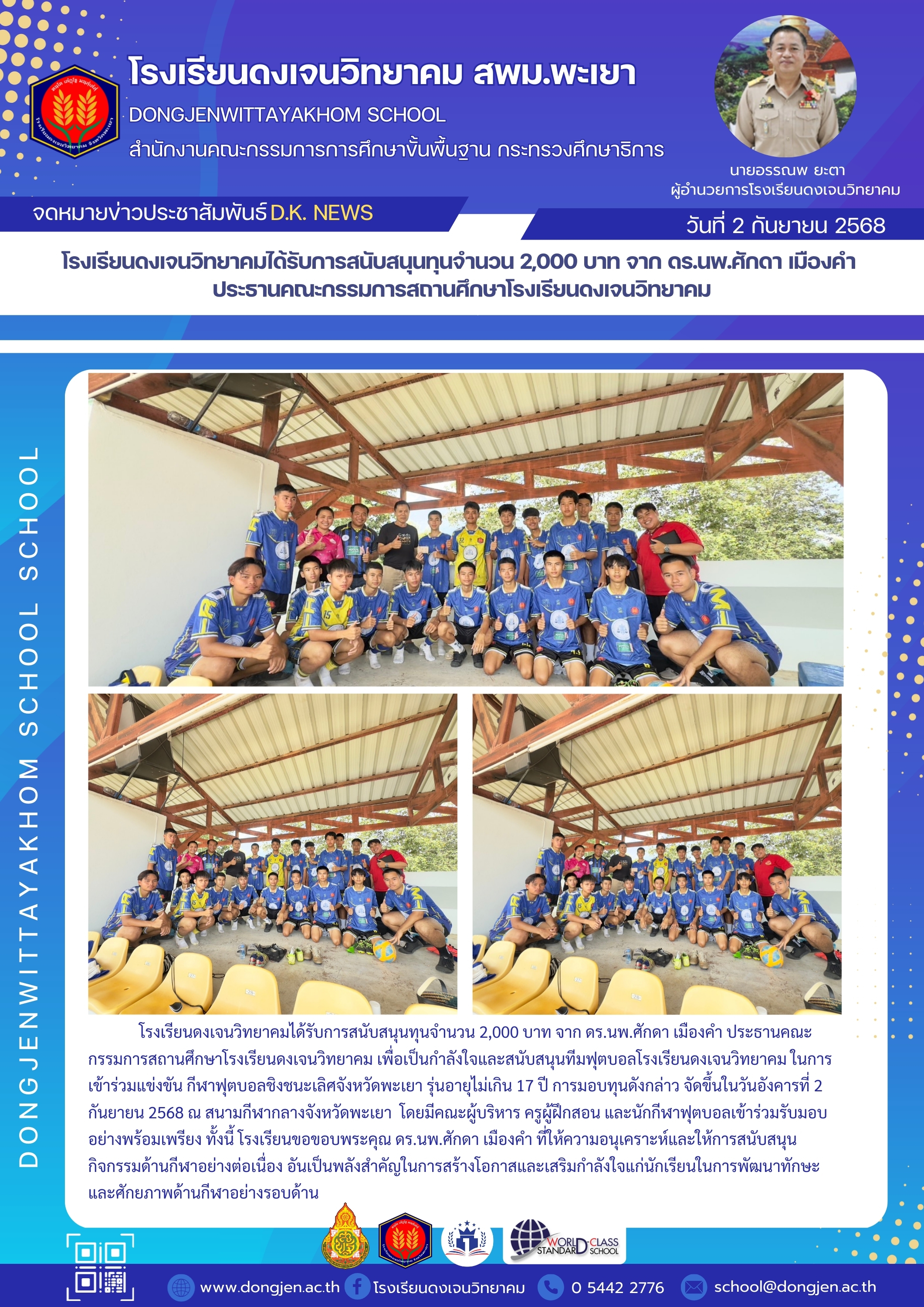 ติดต่อเรา โรงเรียนดงเจนวิทยาคมได้รับการสนับสนุนทุนจาก ดร.นพ.ศักดา เมืองคำ ประธานคณะกรรมการสถานศึกษาโรงเรียนดงเจนวิทยาคม 8 กันยายน 20258 กันยายน 2025