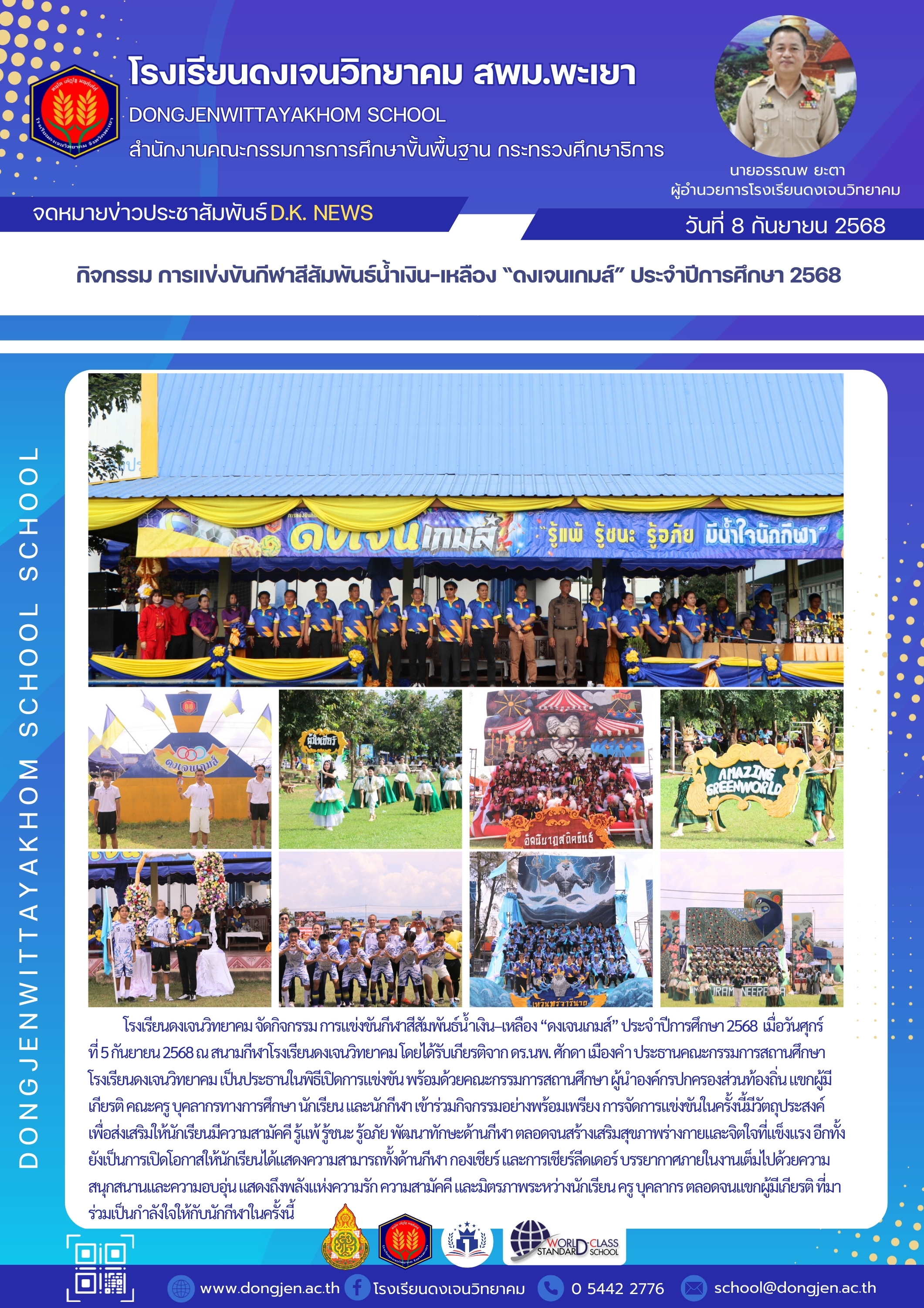 จดหมายข่าวโรงเรียน กิจกรรม การแข่งขันกีฬาสีสัมพันธ์น้ำเงิน–เหลือง “ดงเจนเกมส์” ประจำปีการศึกษา 2568 8 กันยายน 20258 กันยายน 2025