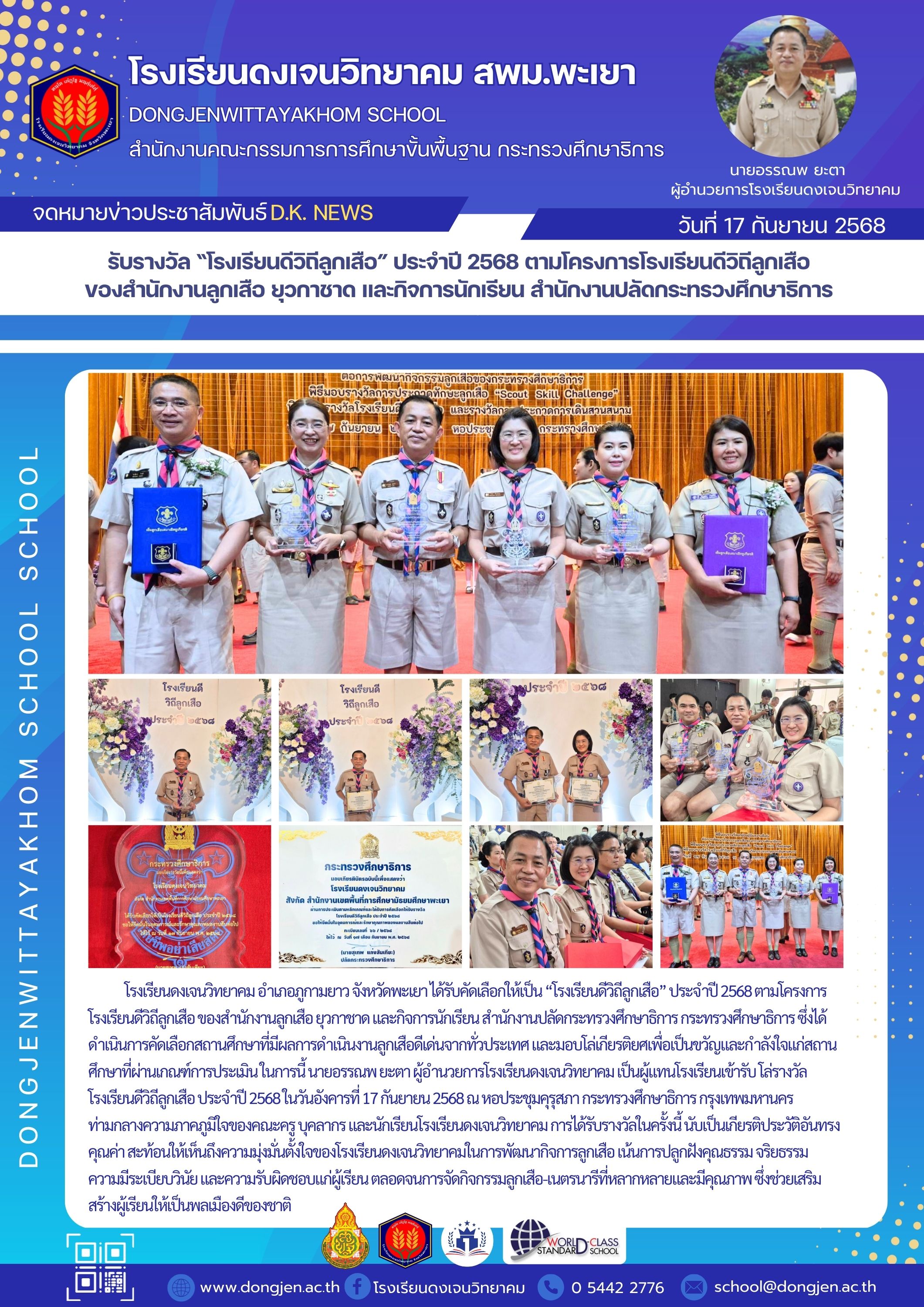จดหมายข่าวโรงเรียน รับรางวัล “โรงเรียนดีวิถีลูกเสือ” ประจำปี 2568 ตามโครงการโรงเรียนดีวิถีลูกเสือ ของสำนักงานลูกเสือ ยุวกาชาด และกิจการนักเรียน สำนักงานปลัดกระทรวงศึกษาธิการ 17 กันยายน 202517 กันยายน 2025
