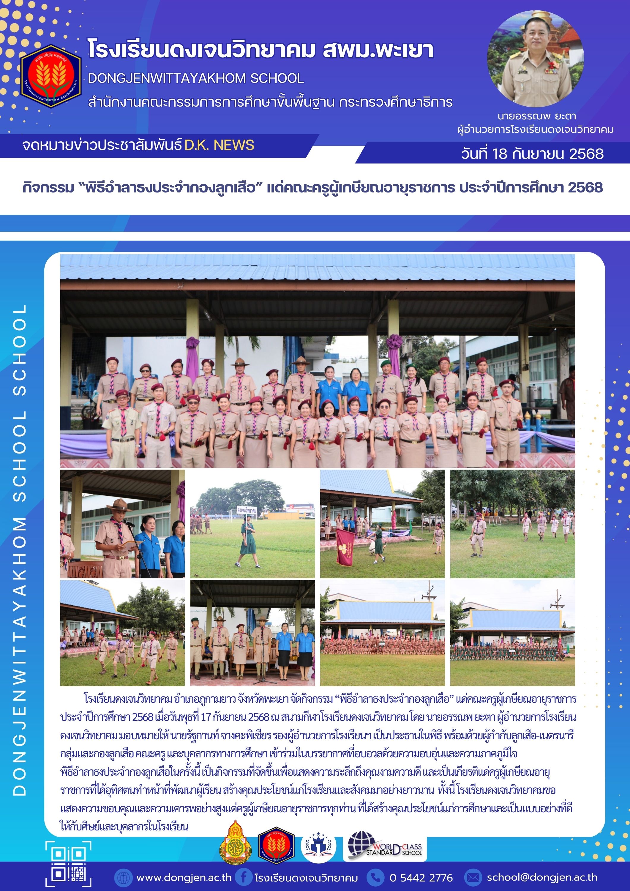 จดหมายข่าวโรงเรียน กิจกรรม “พิธีอำลาธงประจำกองลูกเสือ” แด่คณะครูผู้เกษียณอายุราชการ ประจำปีการศึกษา 2568 18 กันยายน 202518 กันยายน 2025