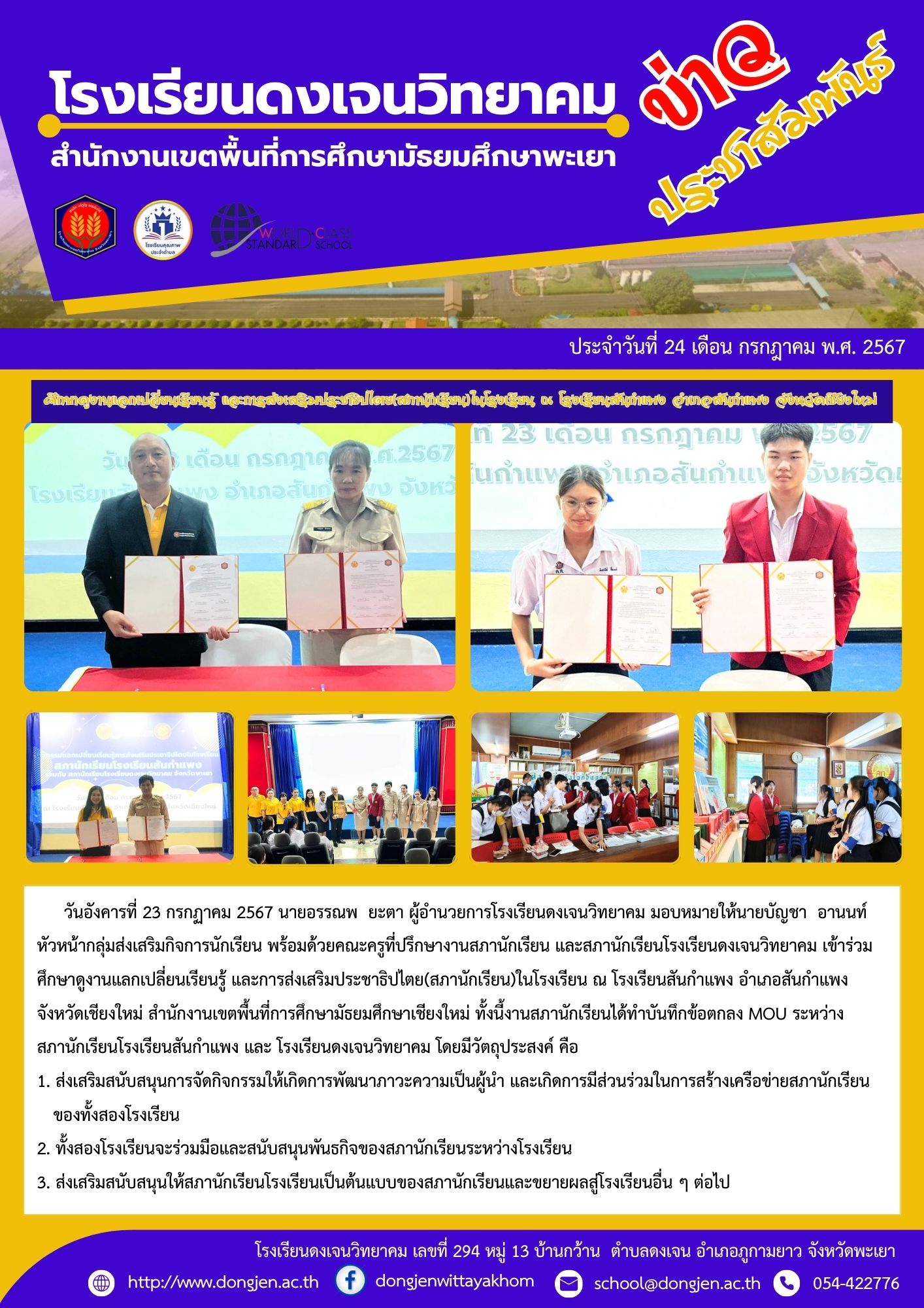 จดหมายข่าวโรงเรียน โรงเรียนดงเจนวิทยาคมรับการติดตาม ตรวจสอบ ประเมินผล และนิเทศการศึกษา สำนักงานเขตพื้นที่การศึกษามัธยมศึกษาพะเยา ประจำปี 2567 3 กรกฎาคม 20243 กรกฎาคม 2024