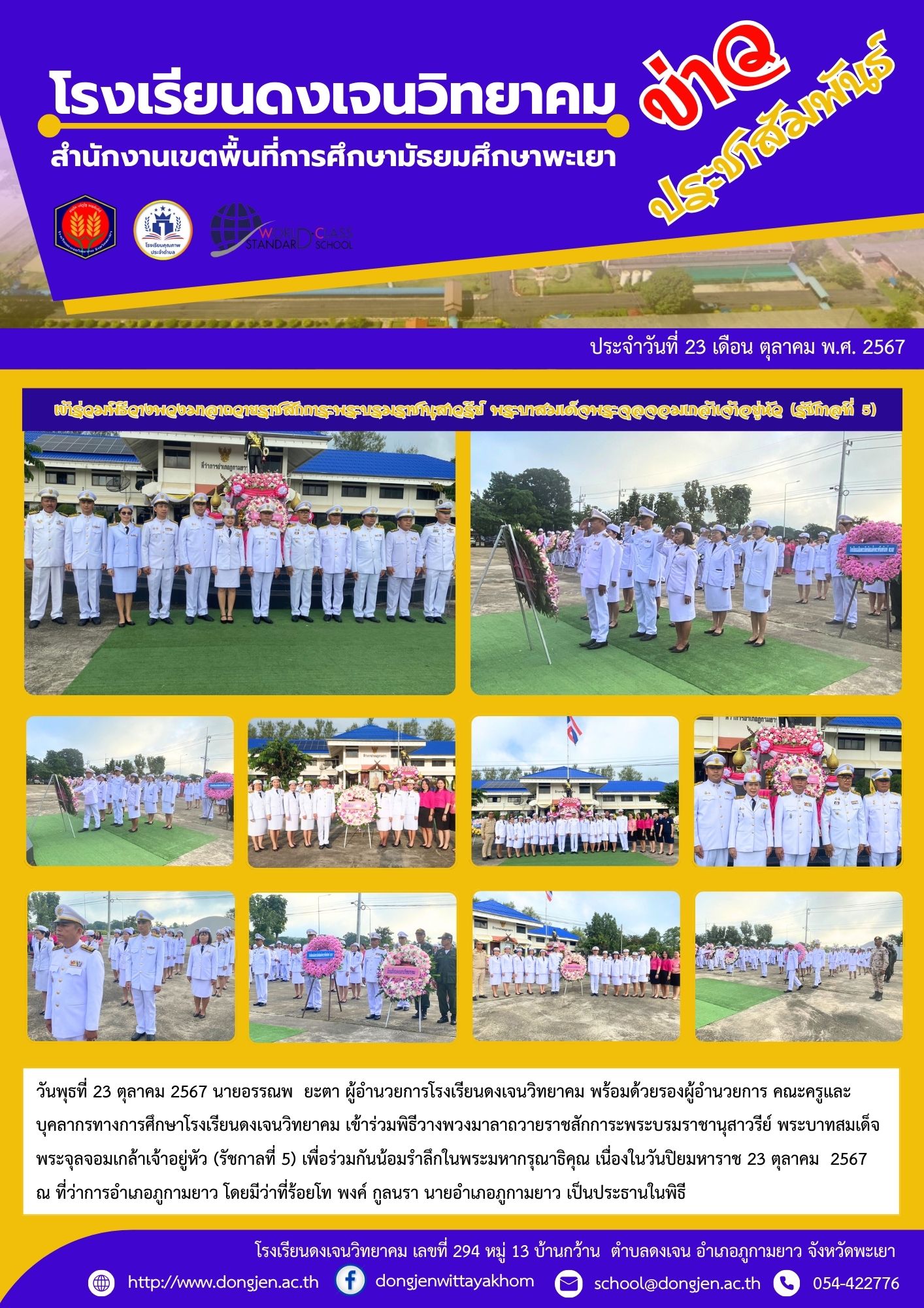 จดหมายข่าวโรงเรียน เข้าร่วมพิธีวางพวงมาลาถวายราชสักการะพระบรมราชานุสาวรีย์ พระบาสมเด็จพระจุลจอมเกล้าเจ้าอยู่หัว (รัชกาลที่ 5) 23 ตุลาคม 202423 ตุลาคม 2024