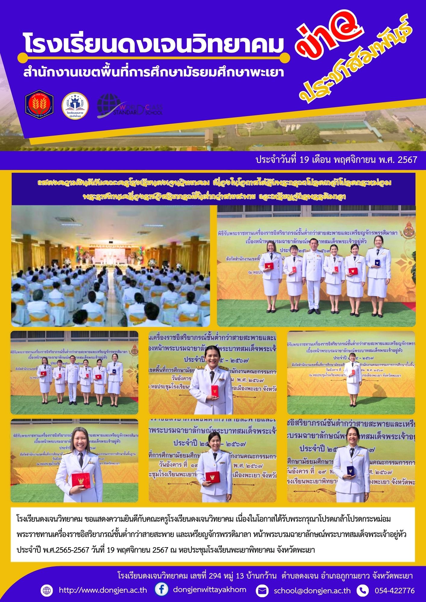 จดหมายข่าวโรงเรียน แสดงความยินดีกับคณะครูโรงเรียนดงเจนวิทยาคม เนื่องในโอกาสได้รับพระกรุณาโปรดเกล้าโปรดกระหม่อมพระราชทานเครื่องราชอิสริยาภรณ์ชั้นต่ำกว่าสายสะพาย และเหรียญจักรพรรดิมาลา 19 พฤศจิกายน 202419 พฤศจิกายน 2024