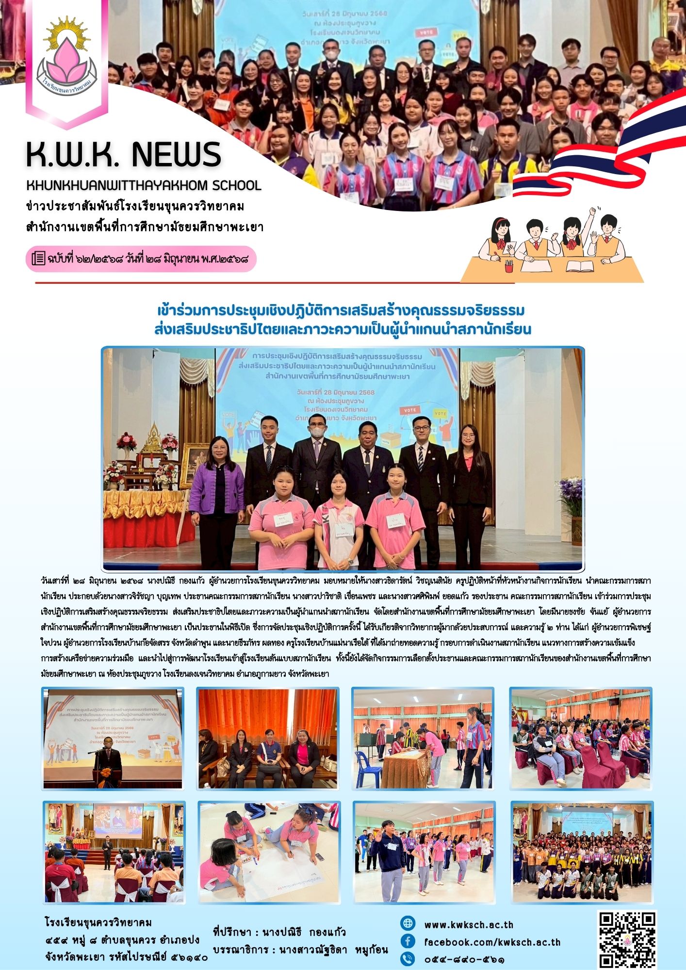 จดหมายข่าวโรงเรียน 📢เข้าร่วมประชุมเชิงปฏิบัติการเสริมสร้างคุณธรรม จริยธรรม และภาวะผู้นำแกนนำนักเรียน🌟 30 มิถุนายน 202530 มิถุนายน 2025