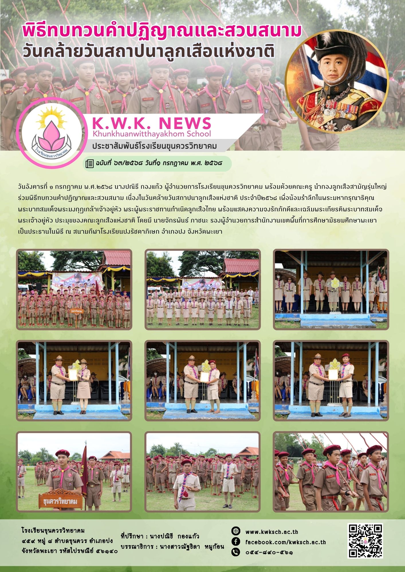 จดหมายข่าวโรงเรียน 🏕️ พิธีทบทวนคำปฏิญาณและสวนสนาม เนื่องในวันคล้ายวันสถาปนาลูกเสือแห่งชาติ 3 กรกฎาคม 20254 กรกฎาคม 2025