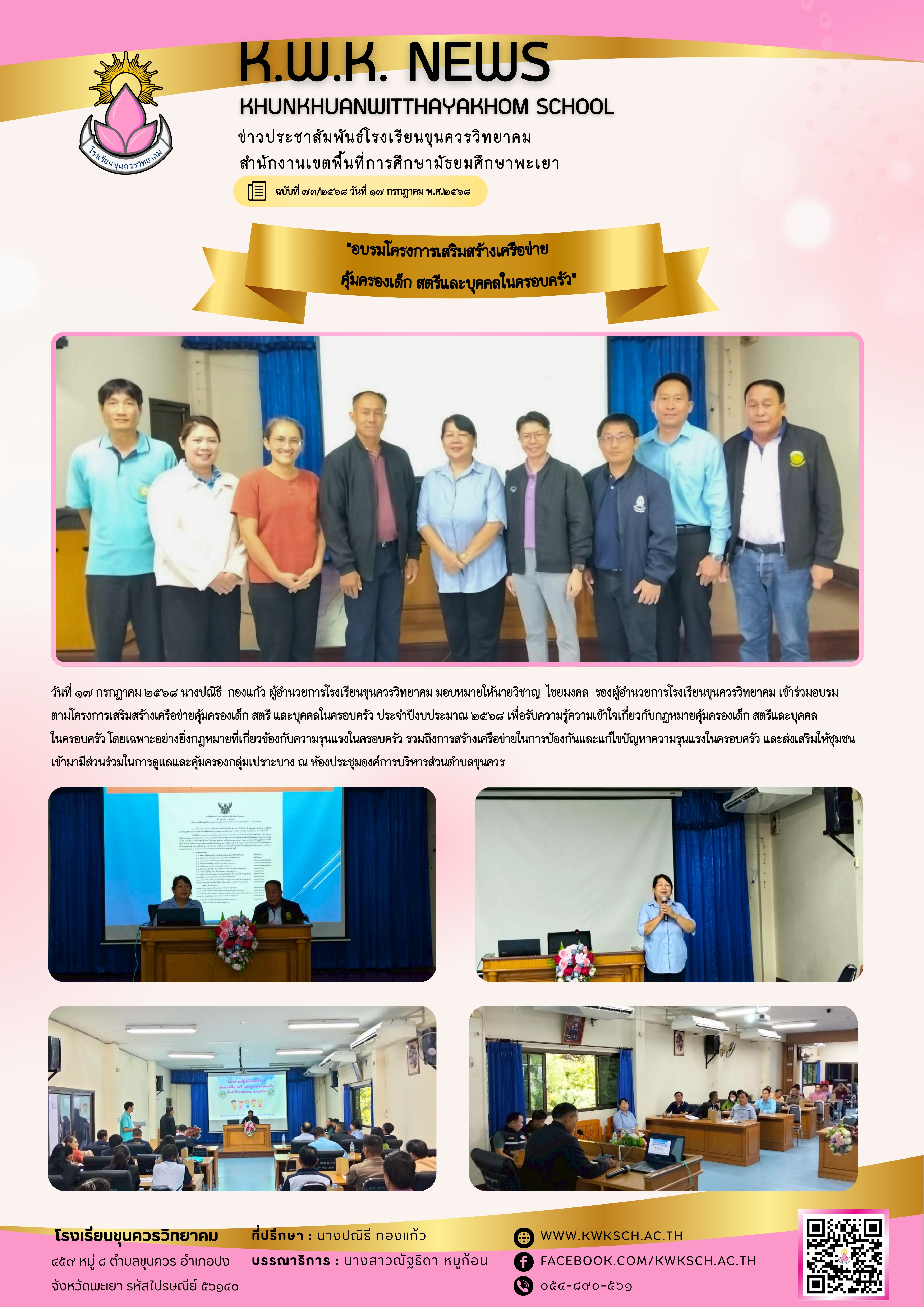 จดหมายข่าวโรงเรียน “อบรมโครงการเสริมสร้างเครือข่าย คุ้มครองเด็ก สตรีและบุคคลในครอบครัว” 21 กรกฎาคม 202521 กรกฎาคม 2025
