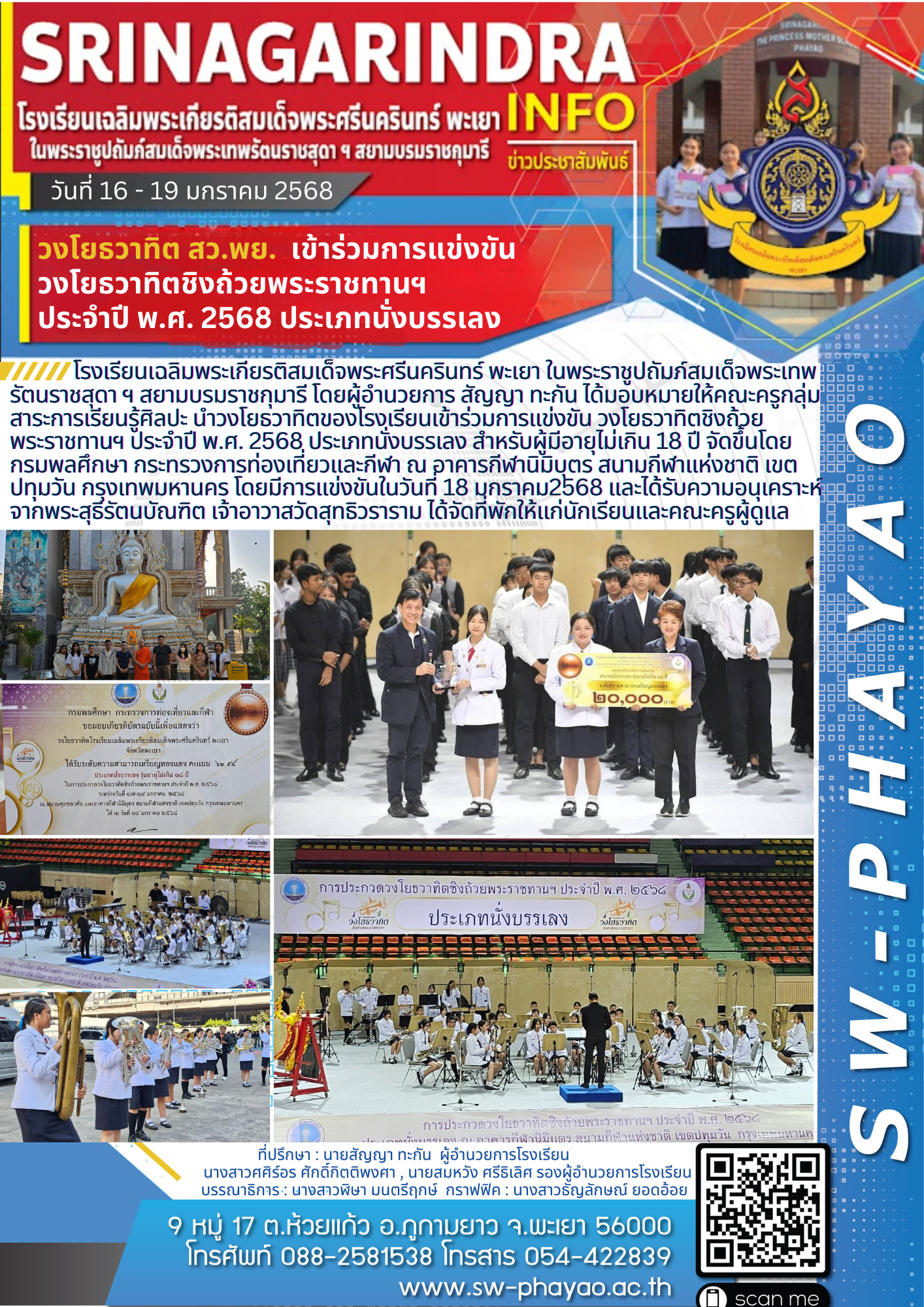 จดหมายข่าวโรงเรียน วงโยธวาทิต สว.พย. เข้าร่วมการแข่งขันวงโยธวาทิตชิงถ้วยพระราชทาน ฯ ประจำปี พ.ศ. 2568 ประเภทนั่งบรรเลง 21 มกราคม 202521 มกราคม 2025