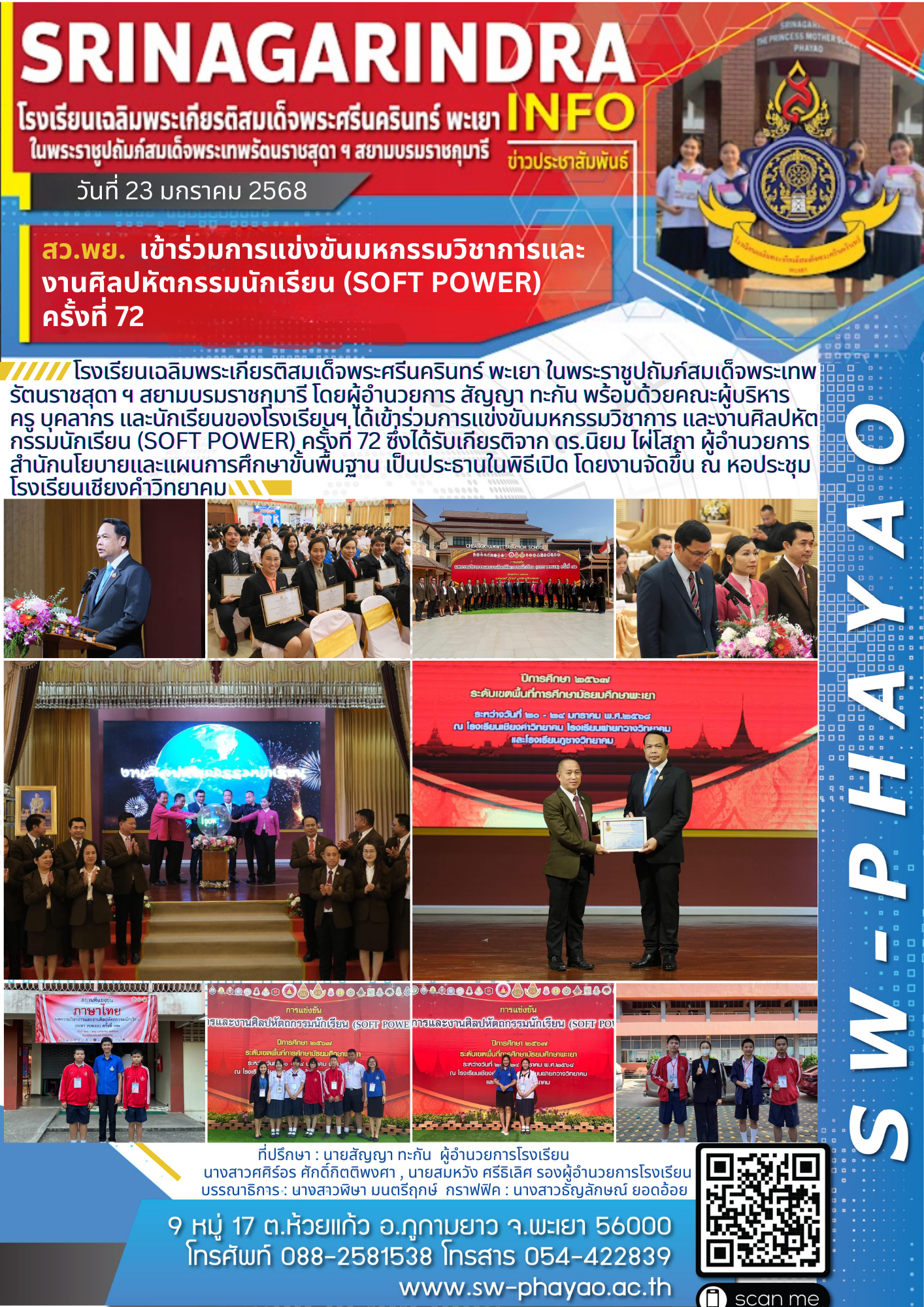 จดหมายข่าวโรงเรียน สว.พย. เข้าร่วมการแข่งขันมหกรรมวิชาการและงานศิลปหัตกรรมนักเรียน (SOFT POWER) ครั้งที่ 72 23 มกราคม 202523 มกราคม 2025