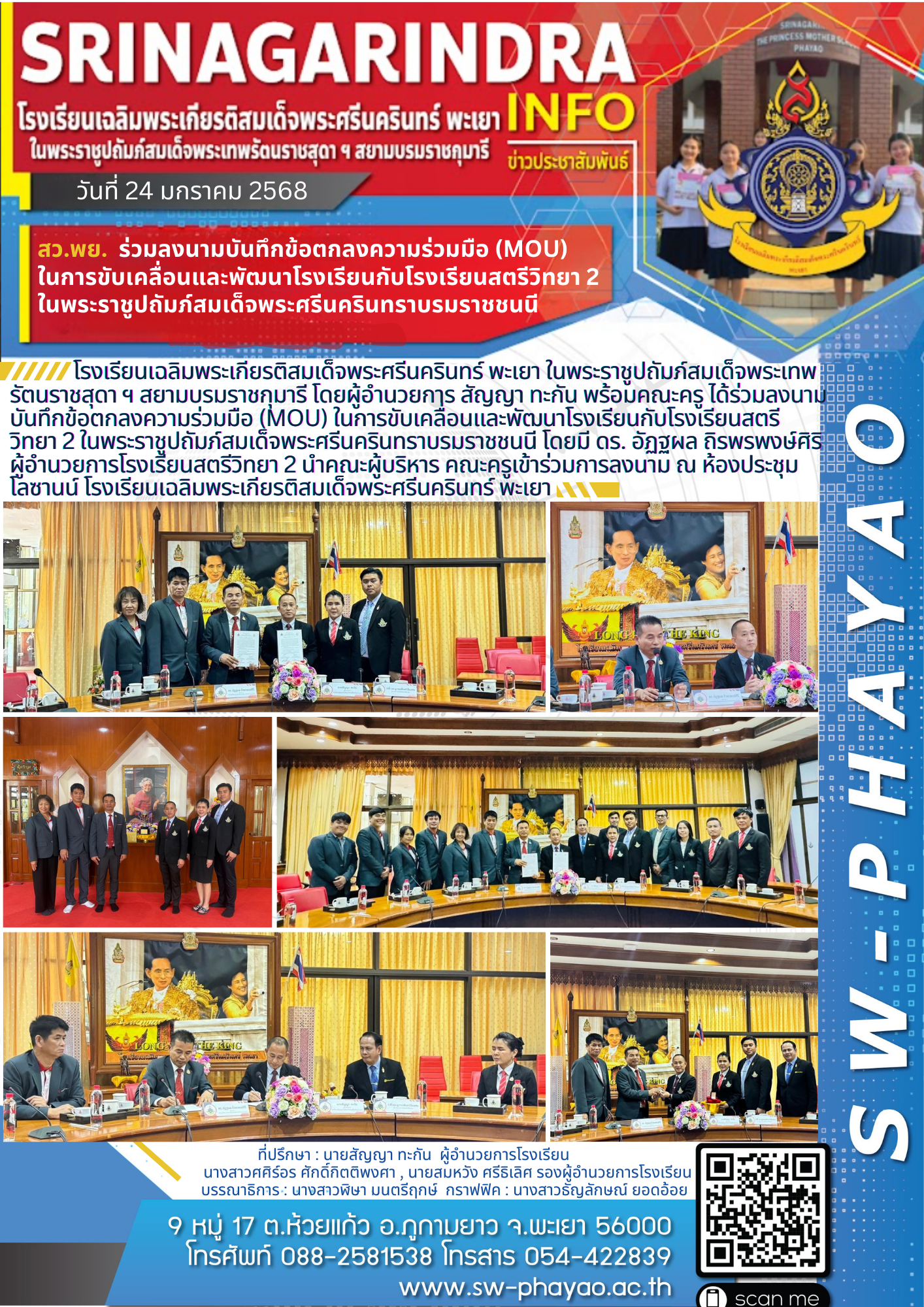 จดหมายข่าวโรงเรียน สว.พย. ร่วมลงนามบันทึกข้อตกลงความร่วมมือ (MOU) ในการขับเคลื่อนและพัฒนาโรงเรียนกับโรงเรียนสตรีวิทยา 2 ในพระราชูปถัมภ์สมเด็จพระศรีนครินทราบรมราชชนนี 24 มกราคม 202524 มกราคม 2025