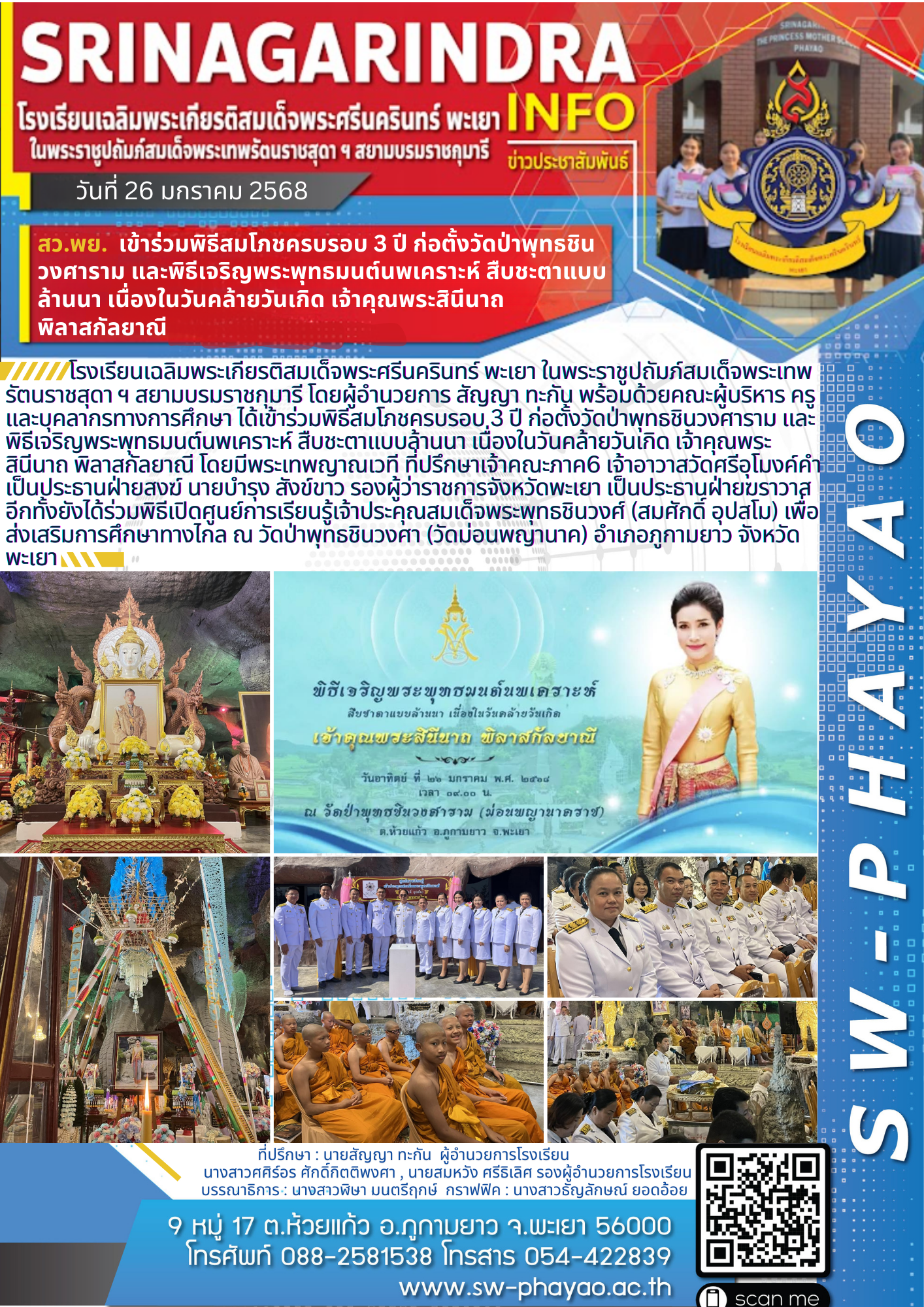 จดหมายข่าวโรงเรียน สว.พย. เข้าร่วมพิธีสมโภชครบรอบ 3 ปี ก่อตั้งวัดป่าพุทธชินวงศาราม และพิธีเจริญพระพุทธมนต์นพเคราะห์ สืบชะตาแบบล้านนา เนื่องในวันคล้ายวันเกิด เจ้าคุณพระสินีนาถพิลาสกัลยาณี 26 มกราคม 202526 มกราคม 2025