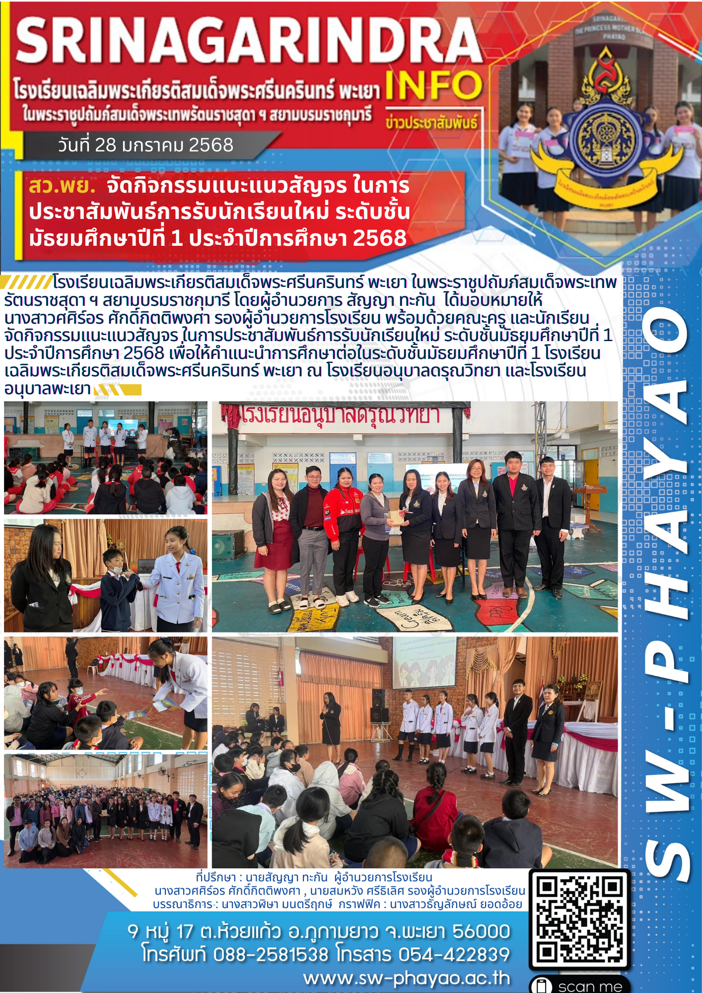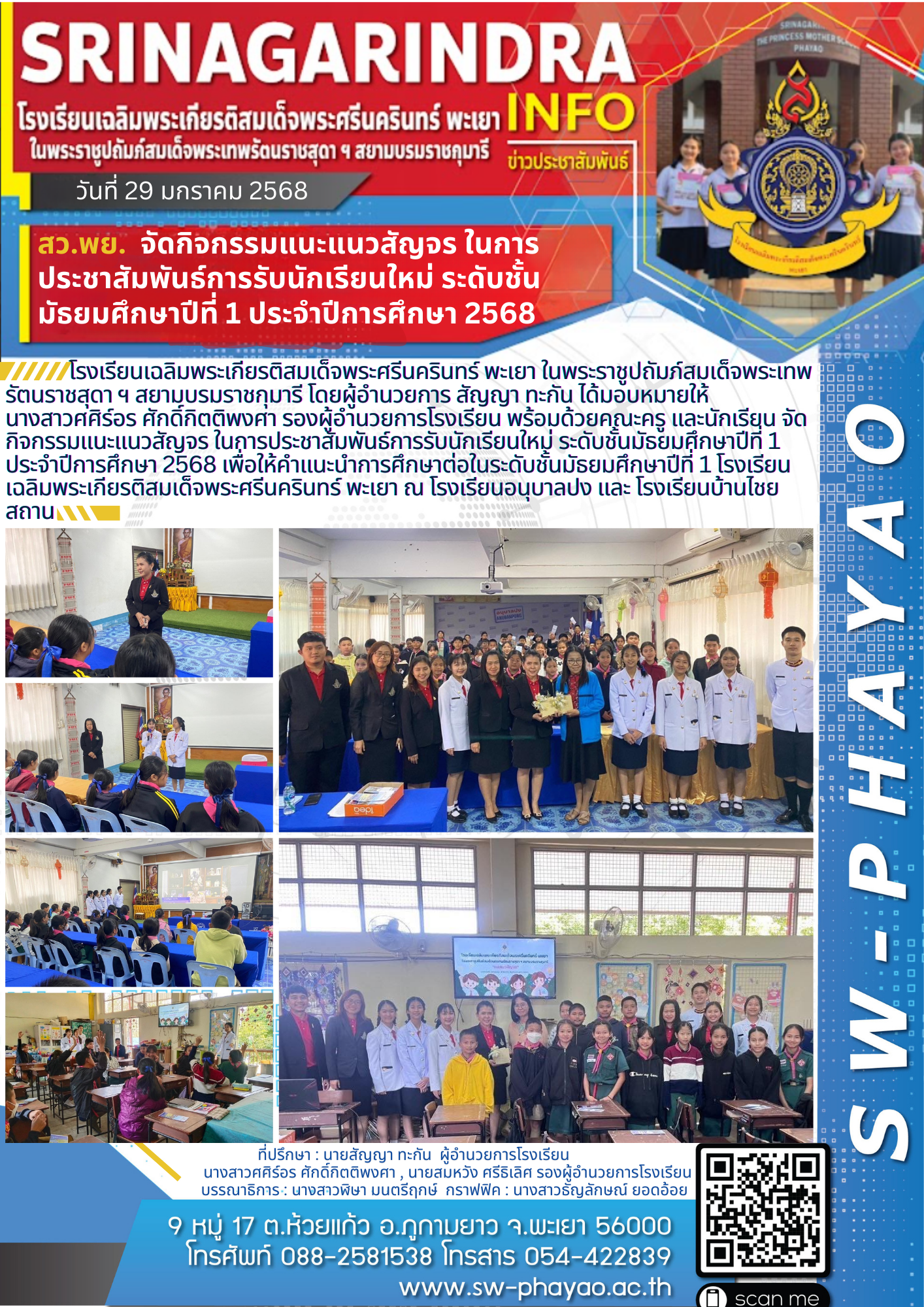 จดหมายข่าวโรงเรียน สว.พย. จัดกิจกรรมแนะแนวสัญจร ในการประชาสัมพันธ์การรับนักเรียนใหม่ ระดับชั้นมัธยมศึกษาปีที่ 1 ประจำปีการศึกษา 2568 29 มกราคม 202529 มกราคม 2025