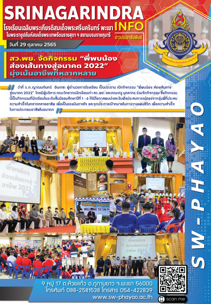 จดหมายข่าวโรงเรียน สว.พย. จัดกิจกรรม “พี่พบน้อง ส่องเส้นทางสู่อนาคต 2022” มุ่งเน้นอาชีพที่หลากหลาย 31 ตุลาคม 20223 พฤศจิกายน 2022