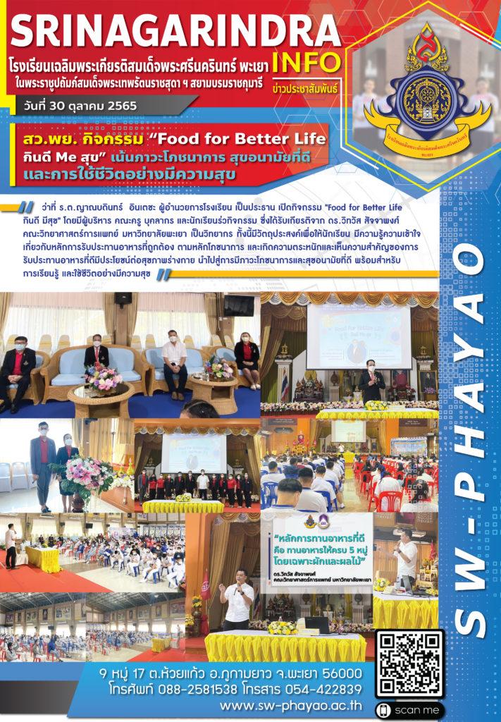 จดหมายข่าวโรงเรียน สว.พย. กิจกรรม “Food for Better Life กินดี มีสุข” เน้นภาวะโภชนาการ สุขอนามัยที่ดีและการใช้ชีวิตอย่างมีความสุข 31 ตุลาคม 20223 พฤศจิกายน 2022