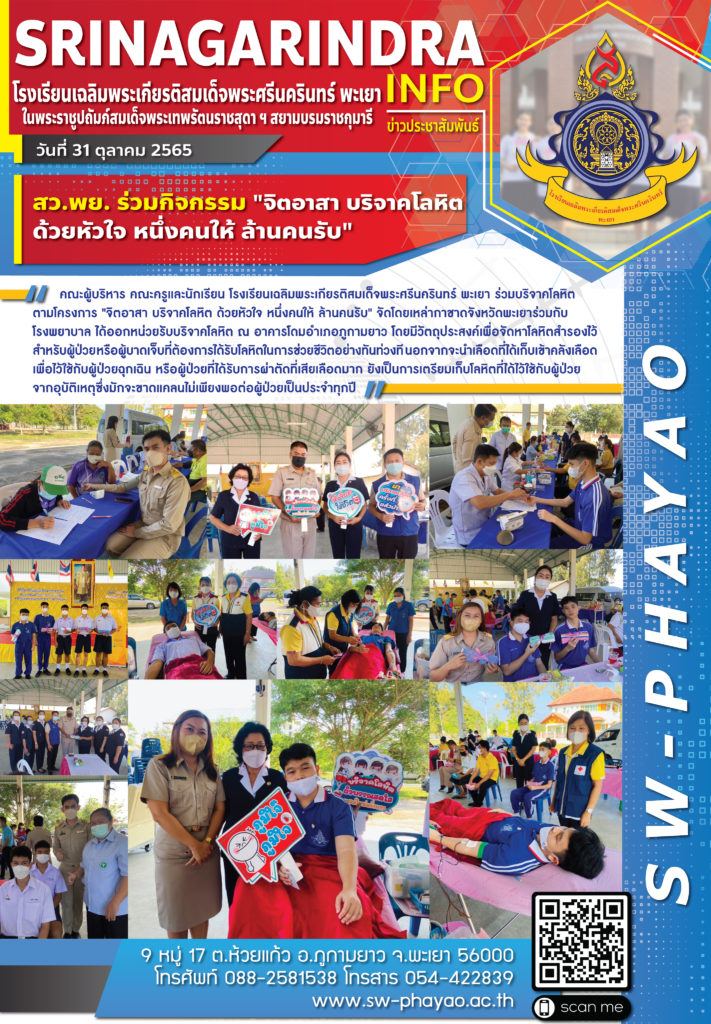 จดหมายข่าวโรงเรียน สว.พย. ร่วมกิจกรรม “จิตอาสา บริจาคโลหิต ด้วยหัวใจ หนึ่งคนให้ ล้านคนรับ” 3 พฤศจิกายน 2022