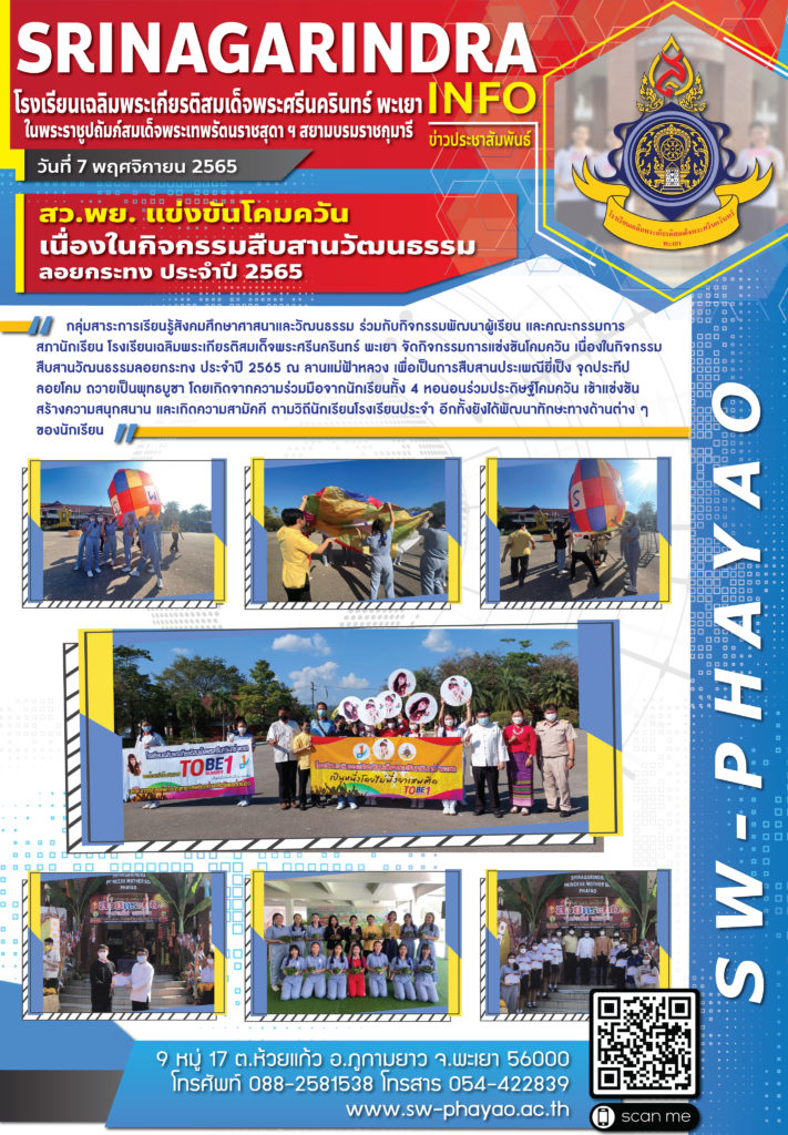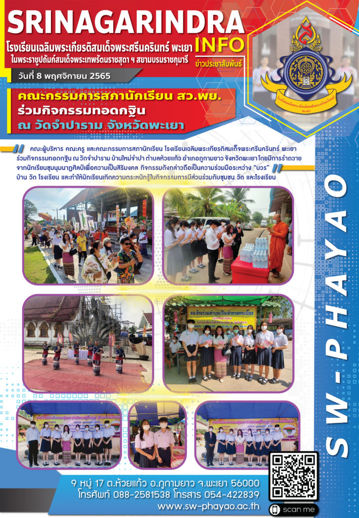จดหมายข่าวโรงเรียน คณะกรรมการสภานักเรียน สว.พย. ร่วมกิจกรรมทอดกฐิน ณ วัดจำปาราม จังหวัดพะเยา 12 พฤศจิกายน 2022