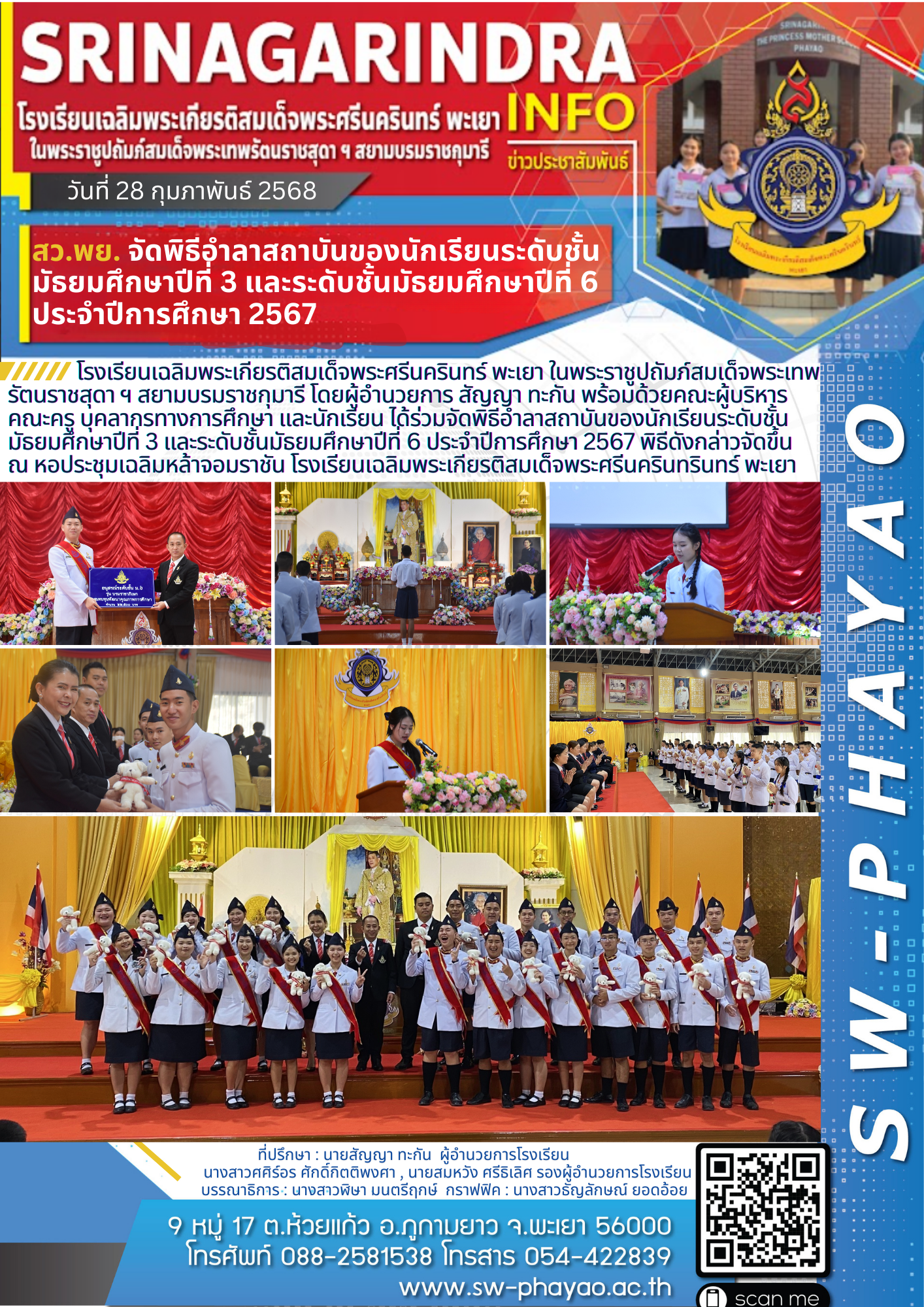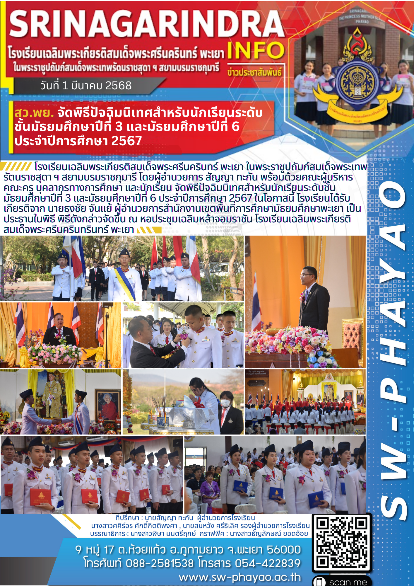 จดหมายข่าวโรงเรียน สว.พย. จัดพิธีอำลาสถาบันของนักเรียนระดับชั้นมัธยมศึกษาปีที่ 3 และระดับชั้นมัธยมศึกษาปีที่ 6 ประจำปีการศึกษา 2567 1 มีนาคม 20251 มีนาคม 2025