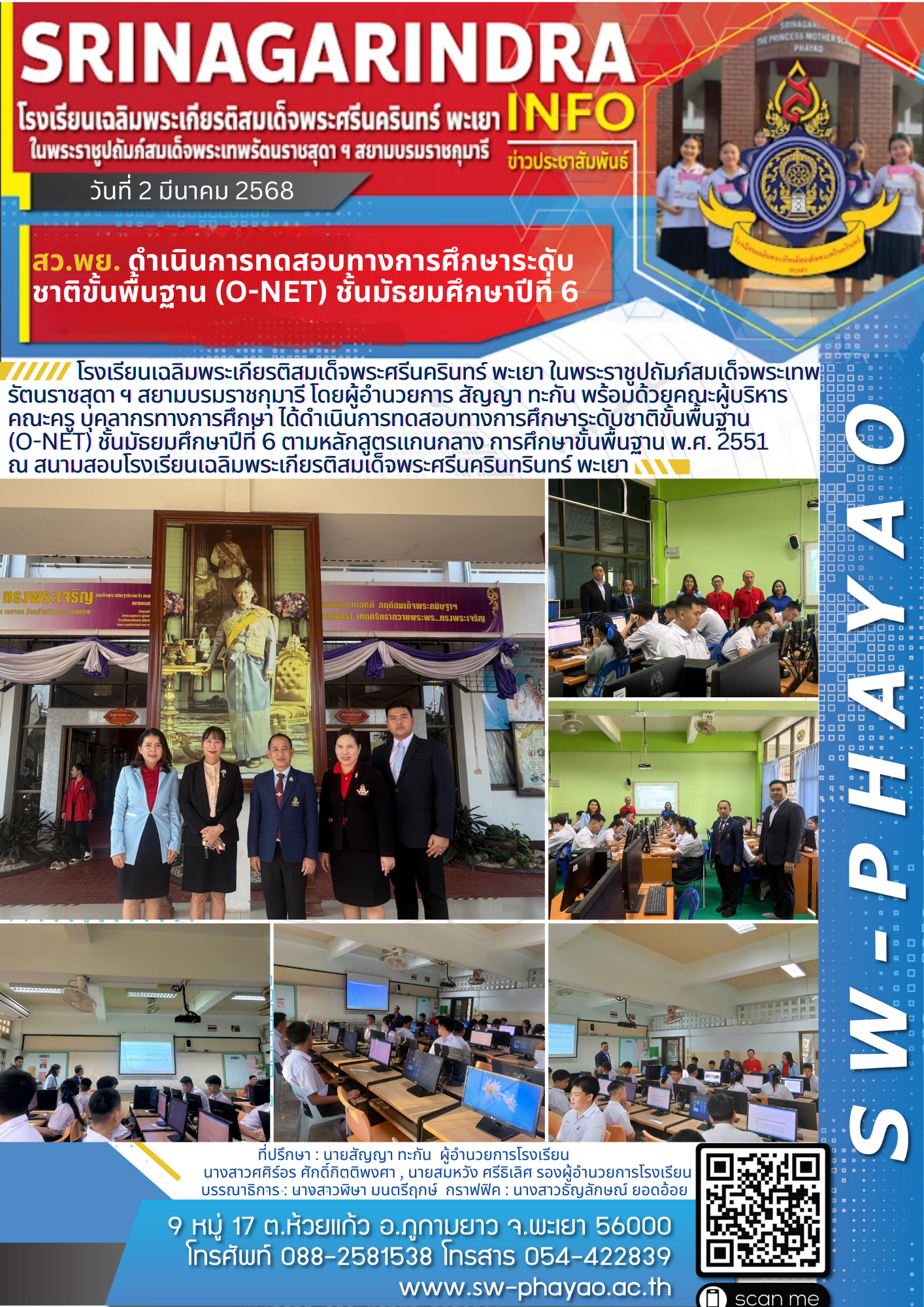 จดหมายข่าวโรงเรียน สว.พย. ดำเนินการทดสอบทางการศึกษาระดับชาติขั้นพื้นฐาน (O-NET) ชั้นมัธยมศึกษาปีที่ 6 3 มีนาคม 20253 มีนาคม 2025