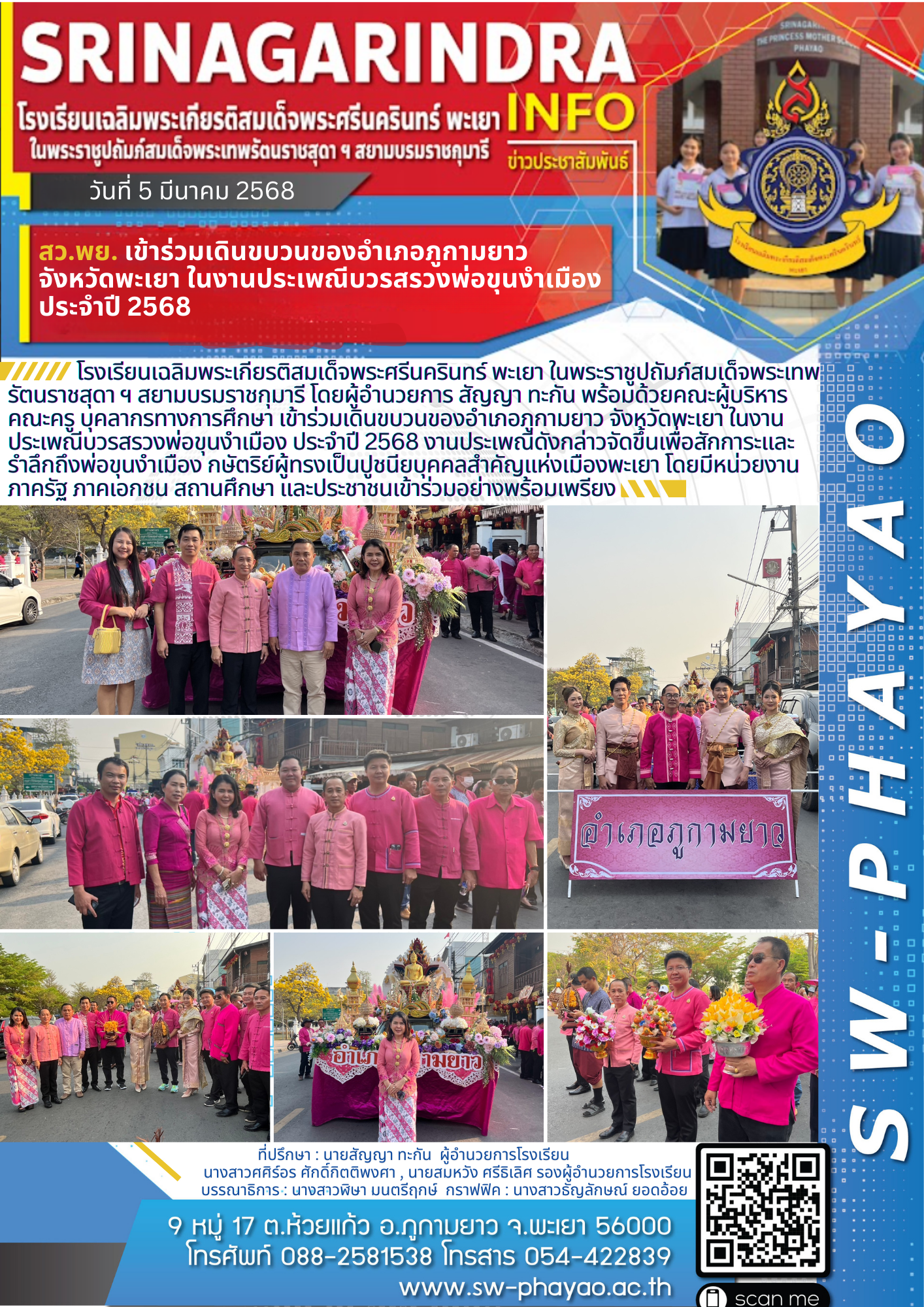 จดหมายข่าวโรงเรียน สว.พย. เข้าร่วมเดินขบวนของอำเภอภูกามยาว จังหวัดพะเยา ในงานประเพณีบวรสรวงพ่อขุนงำเมือง ประจำปี 2568 7 มีนาคม 20257 มีนาคม 2025