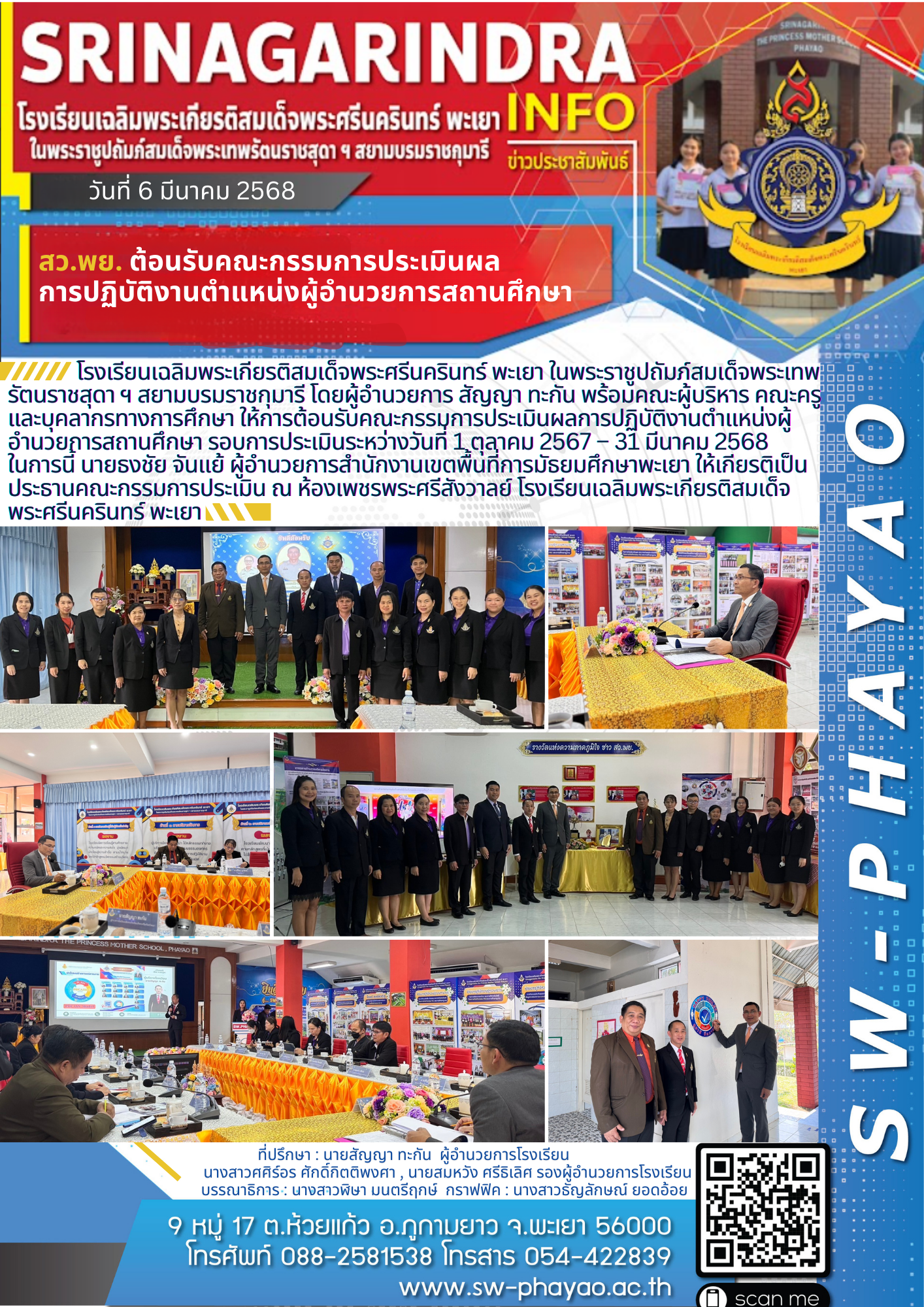 จดหมายข่าวโรงเรียน สว.พย. ต้อนรับคณะกรรมการประเมินผลการปฏิบัติงานตำแหน่งผู้อำนวยการสถานศึกษา 7 มีนาคม 20257 มีนาคม 2025