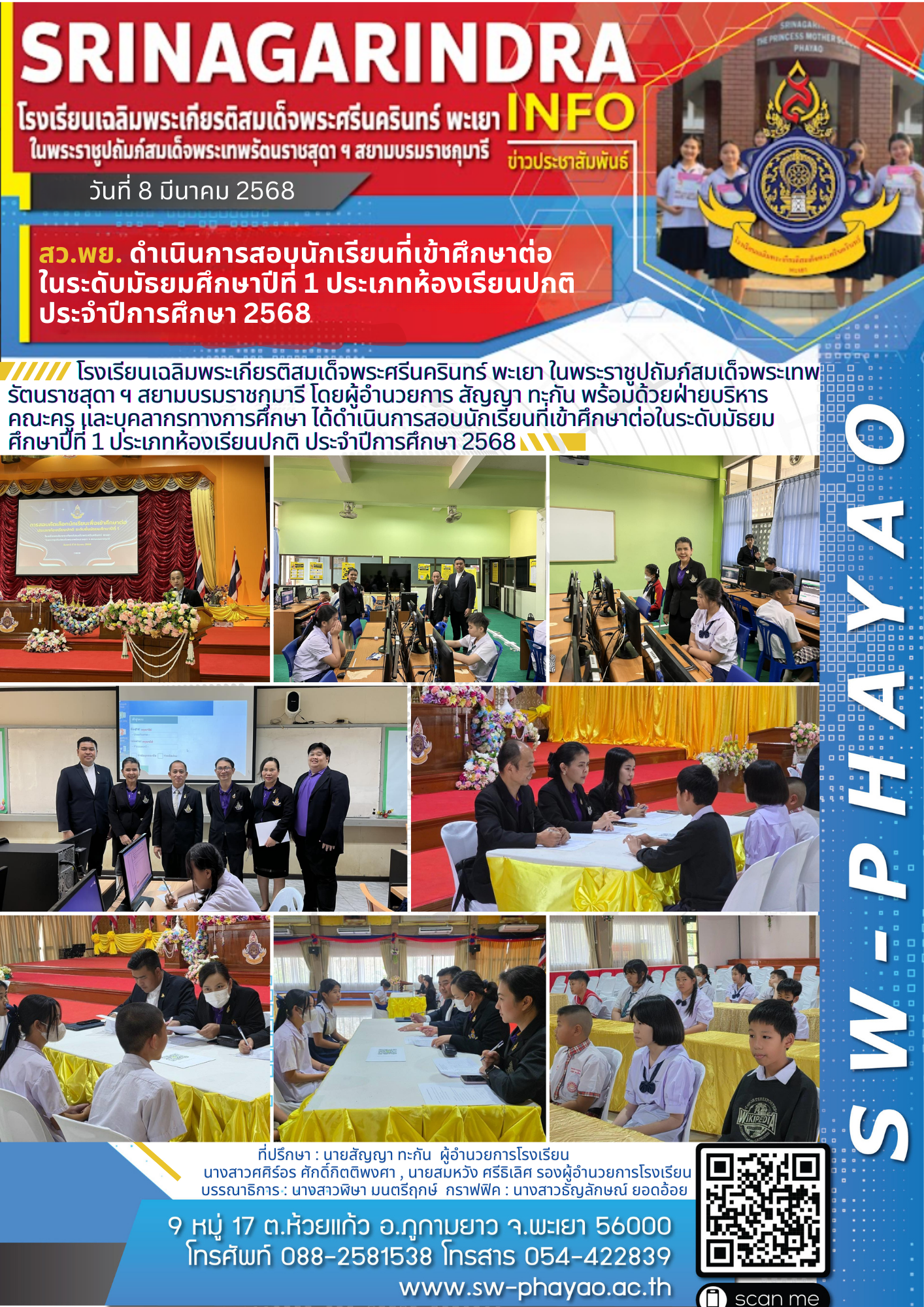 จดหมายข่าวโรงเรียน สว.พย. ดำเนินการสอบนักเรียนที่เข้าศึกษาต่อในระดับมัธยมศึกษาปีที่ 1 ประเภทห้องเรียนปกติ ประจำปีการศึกษา 2568 10 มีนาคม 202510 มีนาคม 2025