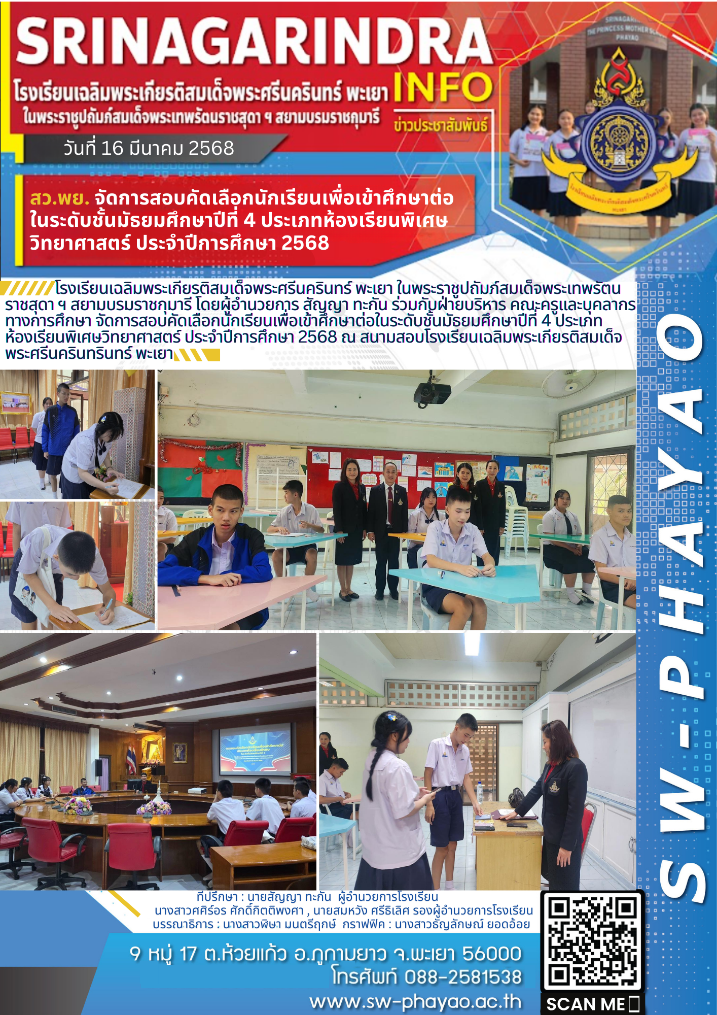 จดหมายข่าวโรงเรียน สว.พย. จัดการสอบคัดเลือกนักเรียนเพื่อเข้าศึกษาต่อในระดับชั้นมัธยมศึกษาปีที่ 4 ประเภทห้องเรียนพิเศษวิทยาศาสตร์ ประจำปีการศึกษา 2568 17 มีนาคม 202517 มีนาคม 2025