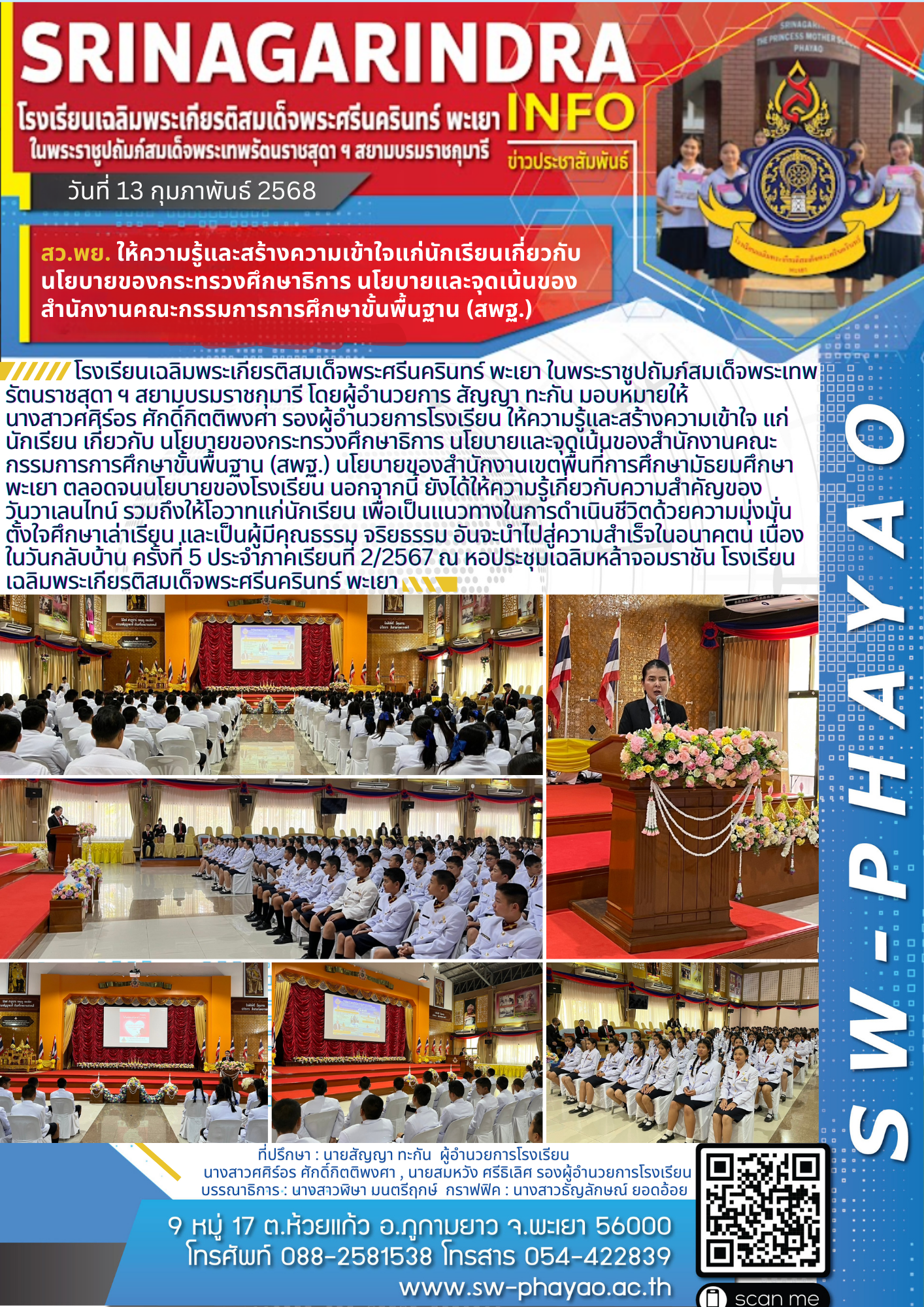 จดหมายข่าวโรงเรียน สว.พย. ให้ความรู้และสร้างความเข้าใจแก่นักเรียนเกี่ยวกับ นโยบายของกระทรวงศึกษาธิการ นโยบายและจุดเน้นของสำนักงานคณะกรรมการการศึกษาขั้นพื้นฐาน (สพฐ.) 13 กุมภาพันธ์ 202513 กุมภาพันธ์ 2025