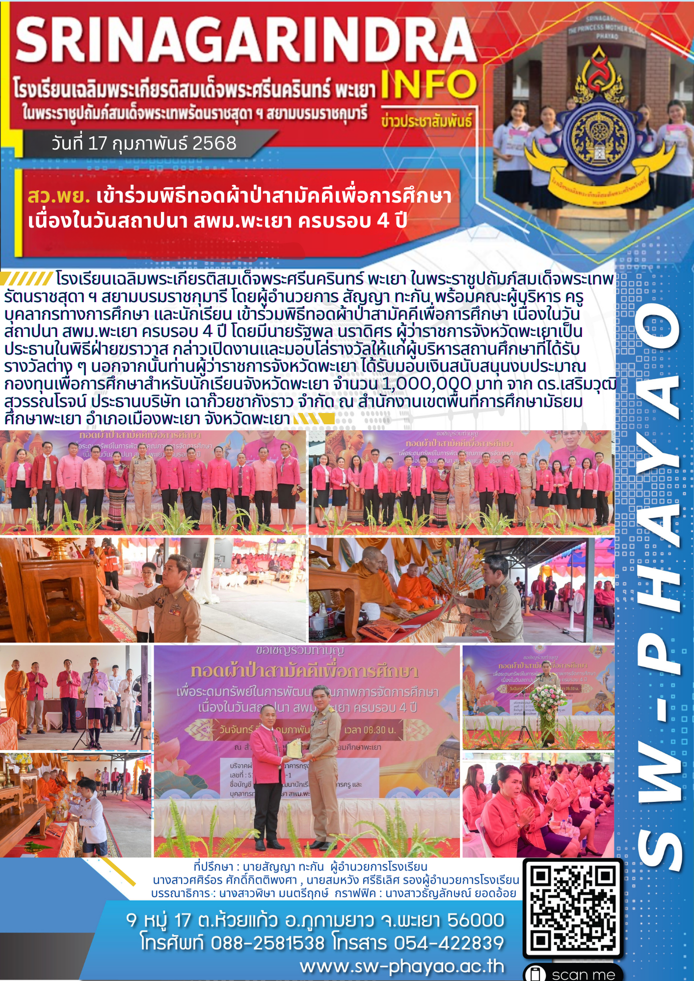 จดหมายข่าวโรงเรียน สว.พย. เข้าร่วมพิธีทอดผ้าป่าสามัคคีเพื่อการศึกษา เนื่องในวันสถาปนา สพม.พะเยา ครบรอบ 4 ปี 17 กุมภาพันธ์ 202517 กุมภาพันธ์ 2025