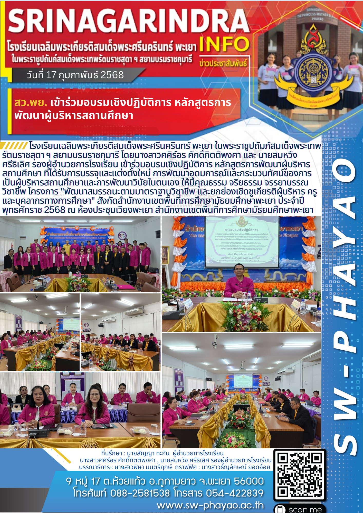จดหมายข่าวโรงเรียน สว.พย. เข้าร่วมอบรมเชิงปฏิบัติการ หลักสูตรการพัฒนาผู้บริหารสถานศึกษา 17 กุมภาพันธ์ 202517 กุมภาพันธ์ 2025