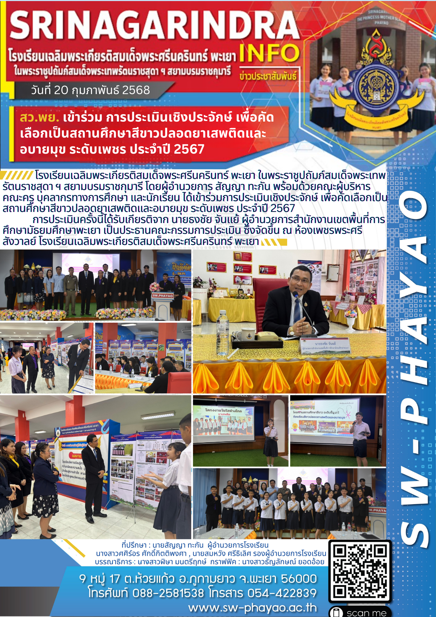 จดหมายข่าวโรงเรียน สว.พย. เข้าร่วม การประเมินเชิงประจักษ์ เพื่อคัดเลือกเป็นสถานศึกษาสีขาวปลอดยาเสพติดและอบายมุข ระดับเพชร ประจำปี 2567 20 กุมภาพันธ์ 202520 กุมภาพันธ์ 2025