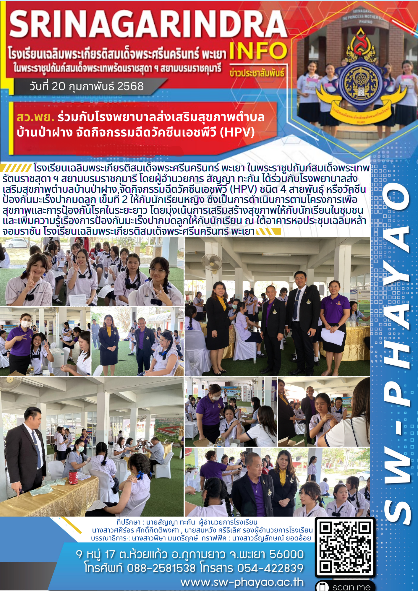 จดหมายข่าวโรงเรียน สว.พย. ร่วมกับโรงพยาบาลส่งเสริมสุขภาพตำบลบ้านป่าฝาง จัดกิจกรรมฉีดวัคซีนเอชพีวี (HPV) 21 กุมภาพันธ์ 202521 กุมภาพันธ์ 2025