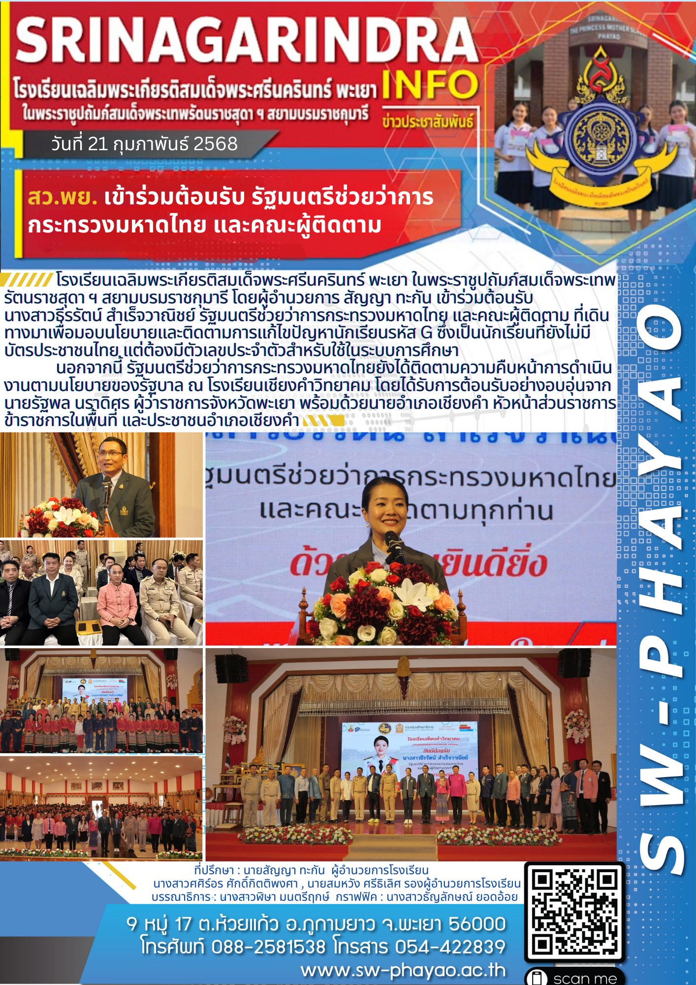 จดหมายข่าวโรงเรียน สว.พย. เข้าร่วมต้อนรับ รัฐมนตรีช่วยว่าการกระทรวงมหาดไทย และคณะผู้ติดตาม 22 กุมภาพันธ์ 202522 กุมภาพันธ์ 2025
