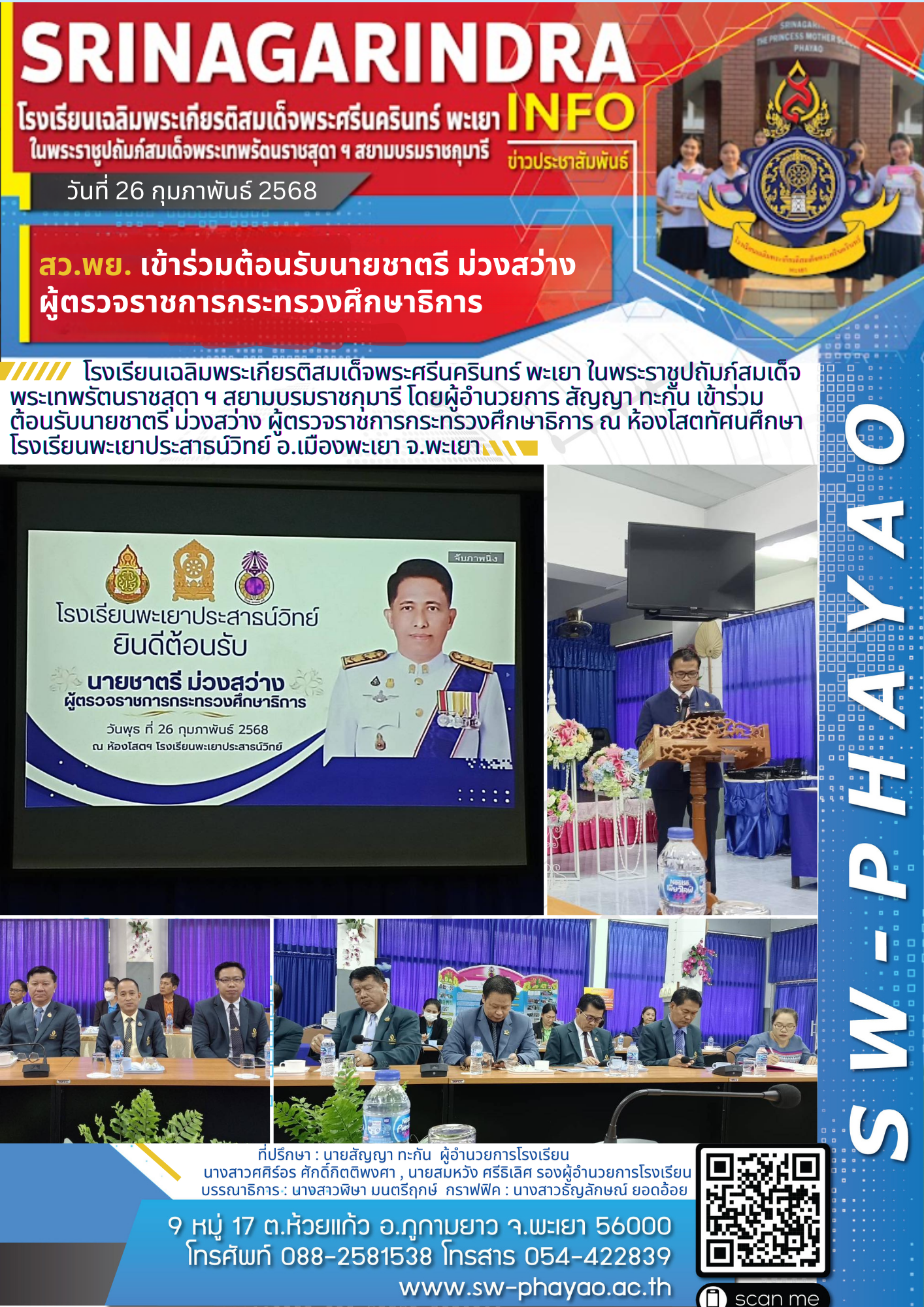 จดหมายข่าวโรงเรียน สว.พย. เข้าร่วมต้อนรับนายชาตรี ม่วงสว่าง ผู้ตรวจราชการกระทรวงศึกษาธิการ 26 กุมภาพันธ์ 202526 กุมภาพันธ์ 2025