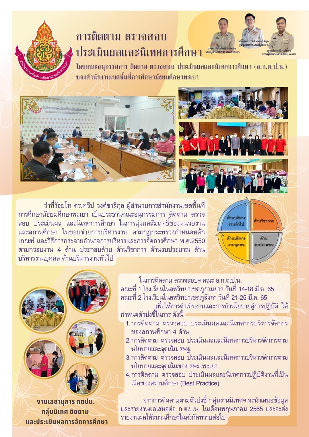 ว่าที่ร้อยโท ดร.ทวีป วงศ์ชาลีกุล ผู้อำนวยการสำนักงานเขตพื้นที่ การศึกษามัธยมศึกษาพะเยา เป็นประธานคณะอนุกรรมการ ติดตาม ตรวจ สอบ ประเมินผล และนิทศการศึกษา ในการมุ่งผลสัมฤทธิ์ของหน่วยงาน และสถานศึกษา ในขอบข่ายการบริหารงาน ตามกฎกระทรวงกำหนดหลัก เกณฑ์ และวิธีการกระจายอำนาจการบริหารและการจัดการศึกษา พ.ศ.2550 ตามกรอบงาน 4 ด้าน ประกอบด้วย ด้านวิชาการ ด้านงบประมาณ ด้าน บริหารงานบุคคล ด้านบริหารงานทั่วไป