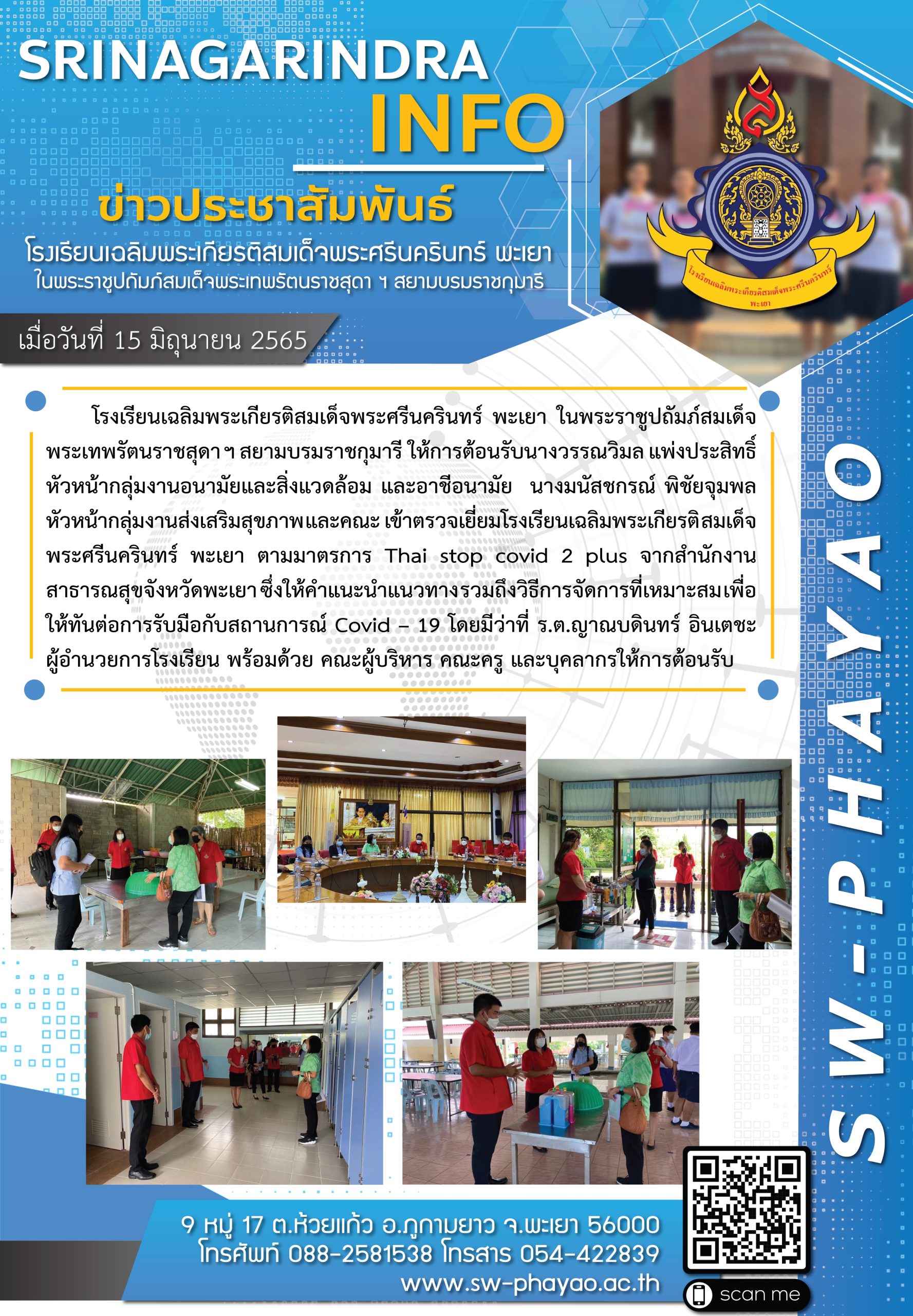 สว.พย. รับการตรวจเยี่ยมโรงเรียนตามมาตรการ Thai stop covid 2 plus จากสำนักงานสาธารณสุขจังหวัดพะเยา