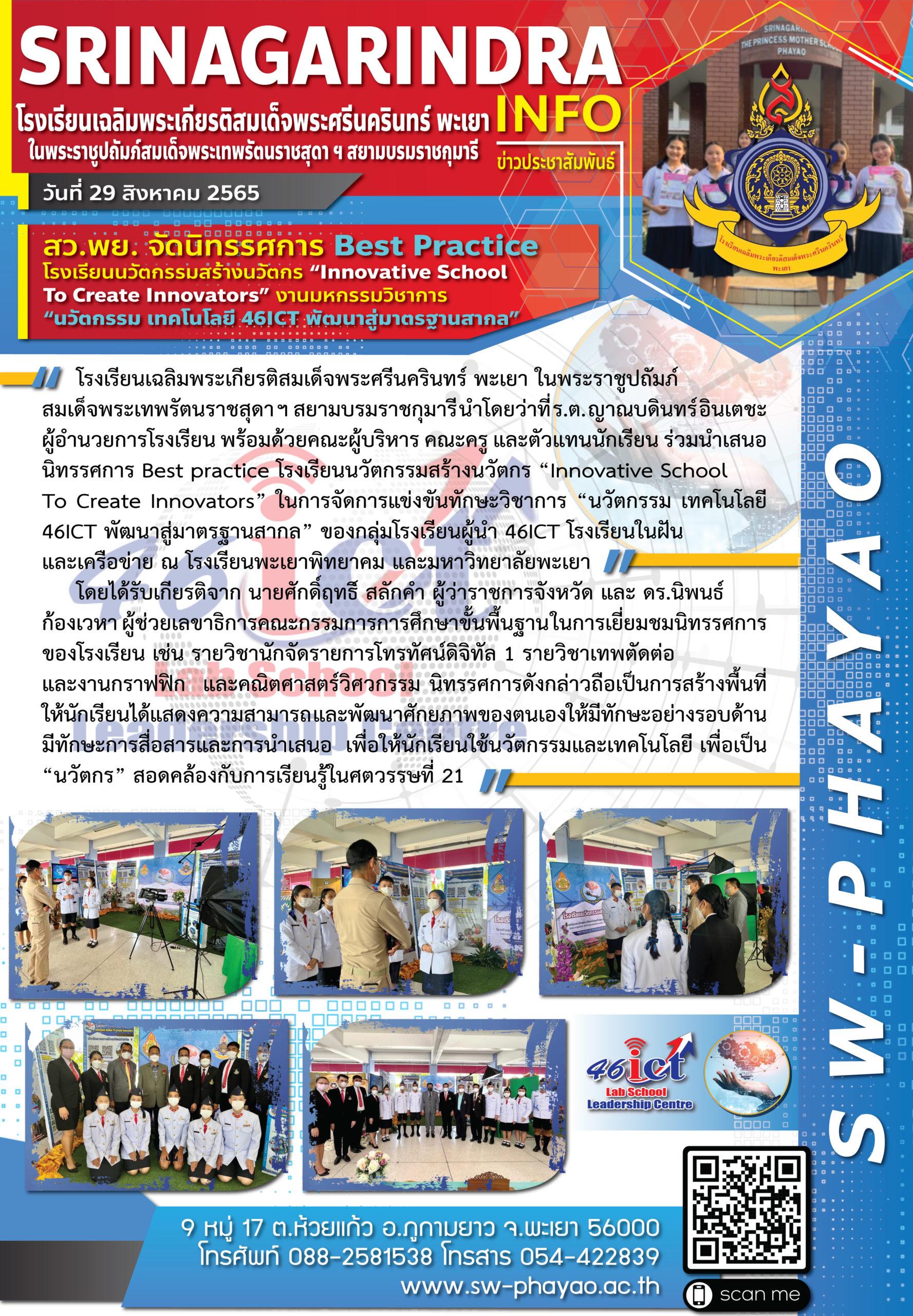 สว.พย. จัดนิทรรศการ Best Practice โรงเรียนนวัตกรรมสร้างนวัตกร “Innovative School To Create Innovators” งานมหกรรมวิชาการ “นวัตกรรม เทคโนโลยี 46ICT พัฒนาสู่มาตรฐานสากล”
