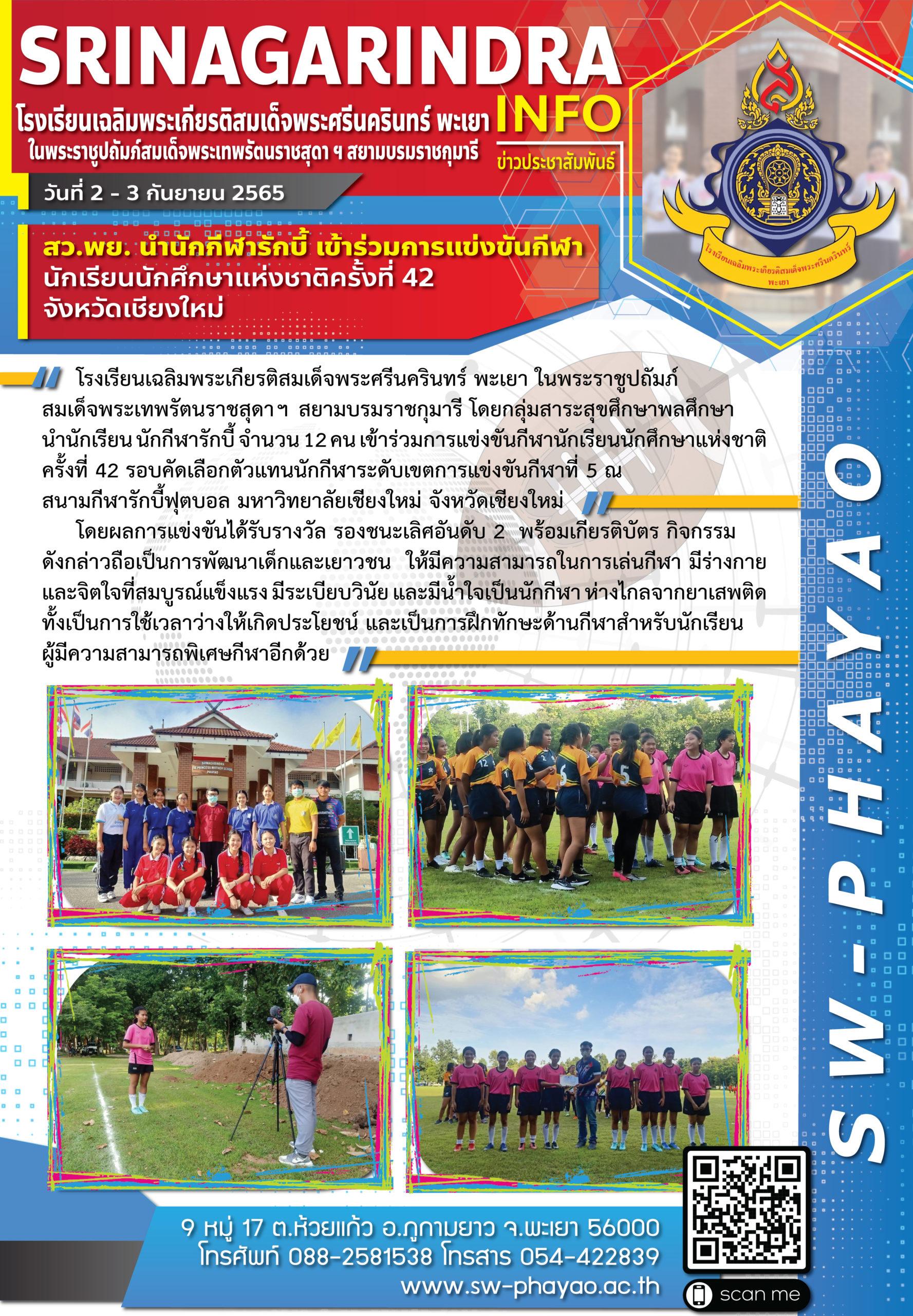 สว.พย. นำนักกีฬารักบี้ เข้าร่วมการแข่งขันกีฬานักเรียนนักศึกษาแห่งชาติครั้งที่ 42 จังหวัดเชียงใหม่