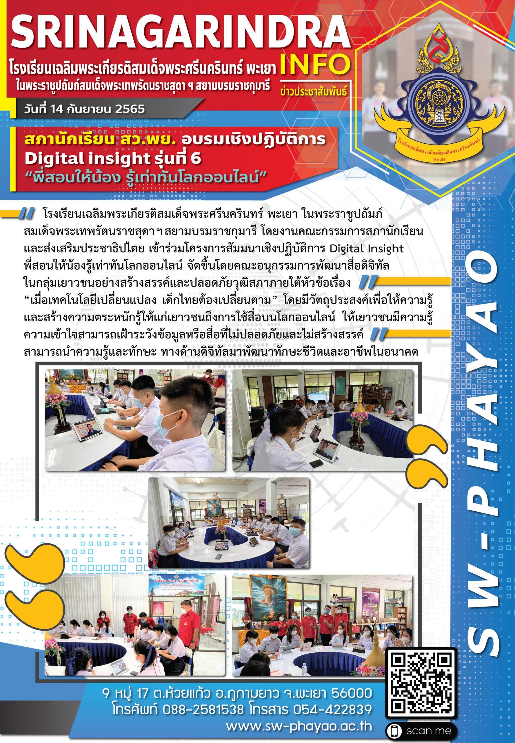 สภานักเรียน สว.พย. ร่วมอบรมเชิงปฏิบัติการ Digital insight รุ่นที่ 6 “พี่สอนให้น้องรู้เท่าทันโลกออนไลน์”