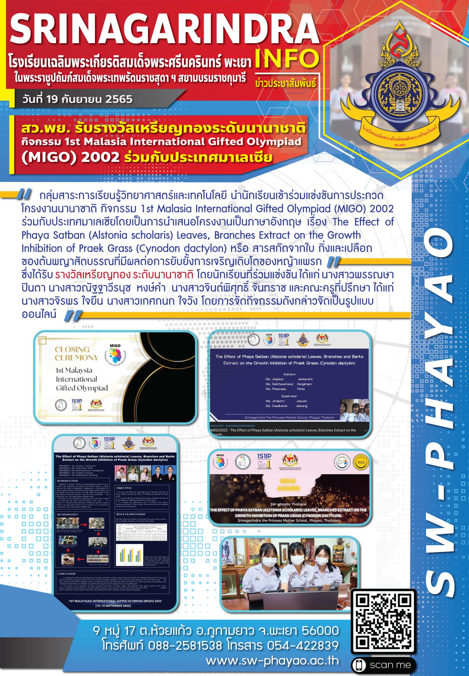 สว.พย. รับรางวัลเหรียญทองระดับนานาชาติ กิจกรรม 1st Malasia International Gifted Olympiad (MIGO) 2002 ร่วมกับประเทศมาเลเซีย
