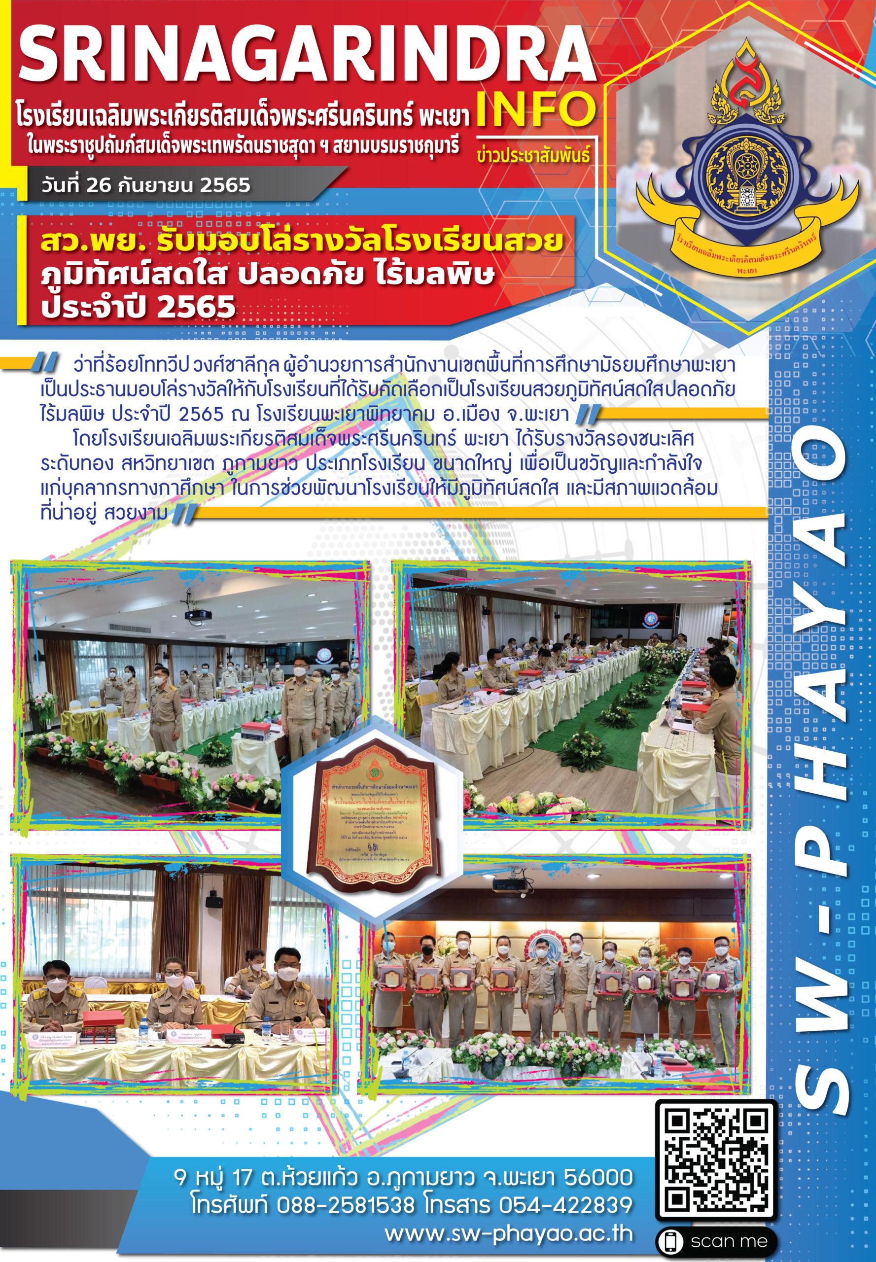 สว.พย. รับมอบโล่รางวัลโรงเรียนสวยภูมิทัศน์สดใส ปลอดภัย ไร้มลพิษ ประจำปี 2565